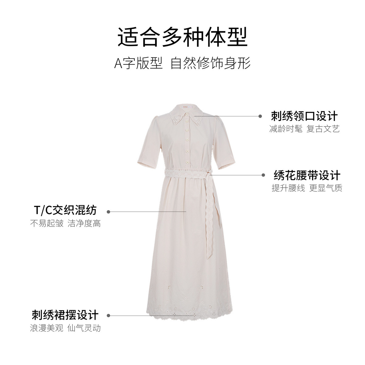 连衣裙12332LQ08158 学院风娃娃领收腰绑带短袖 固执夏季 新款