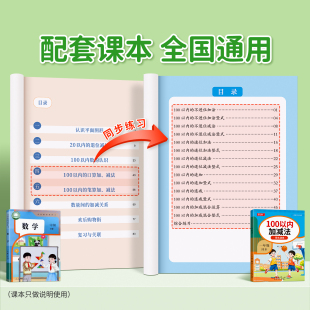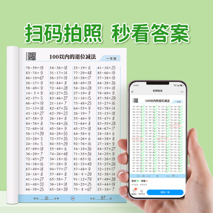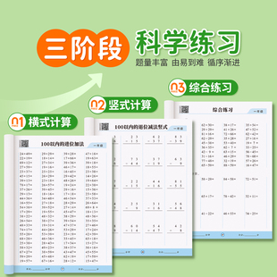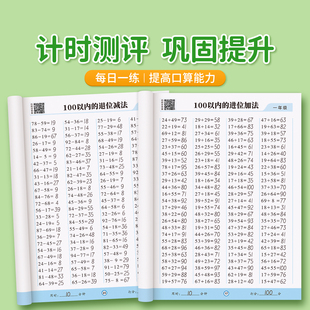 每日一练人教版 竖式 一二年级口算天天练100以内进退位加减法题册 加减法专项练习本一百以内加减混合运算数学口算题卡横式 100以内