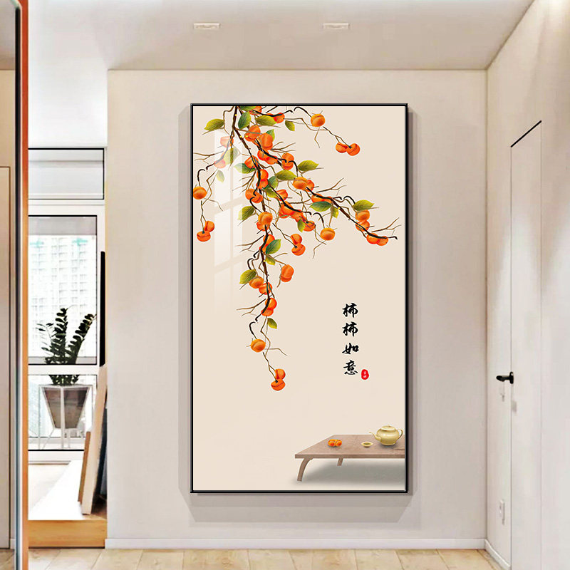 事事如意玄关装 走廊过道尽头墙壁画客厅入户正对门挂画 饰画新中式