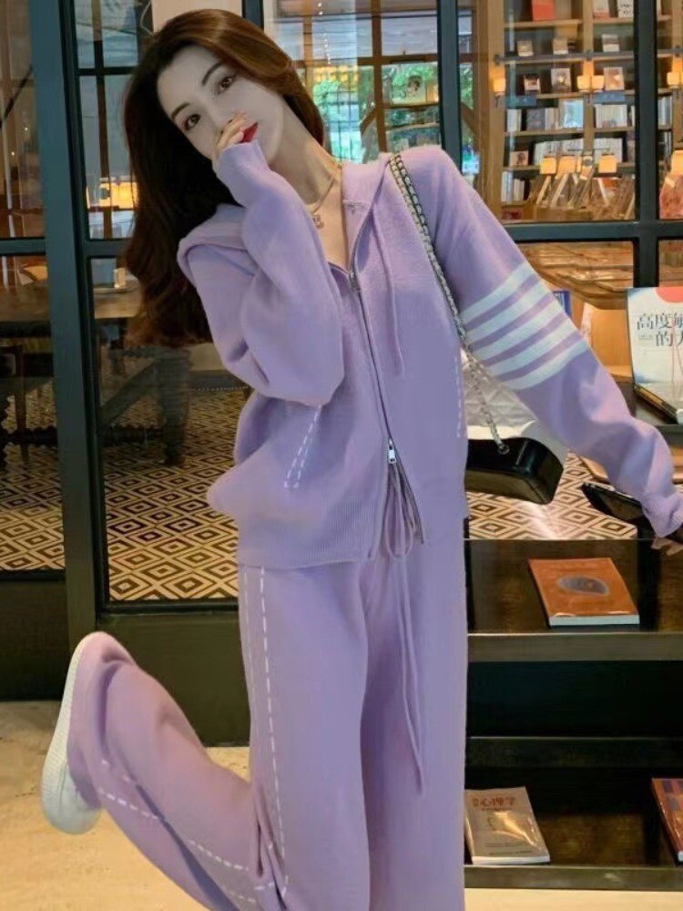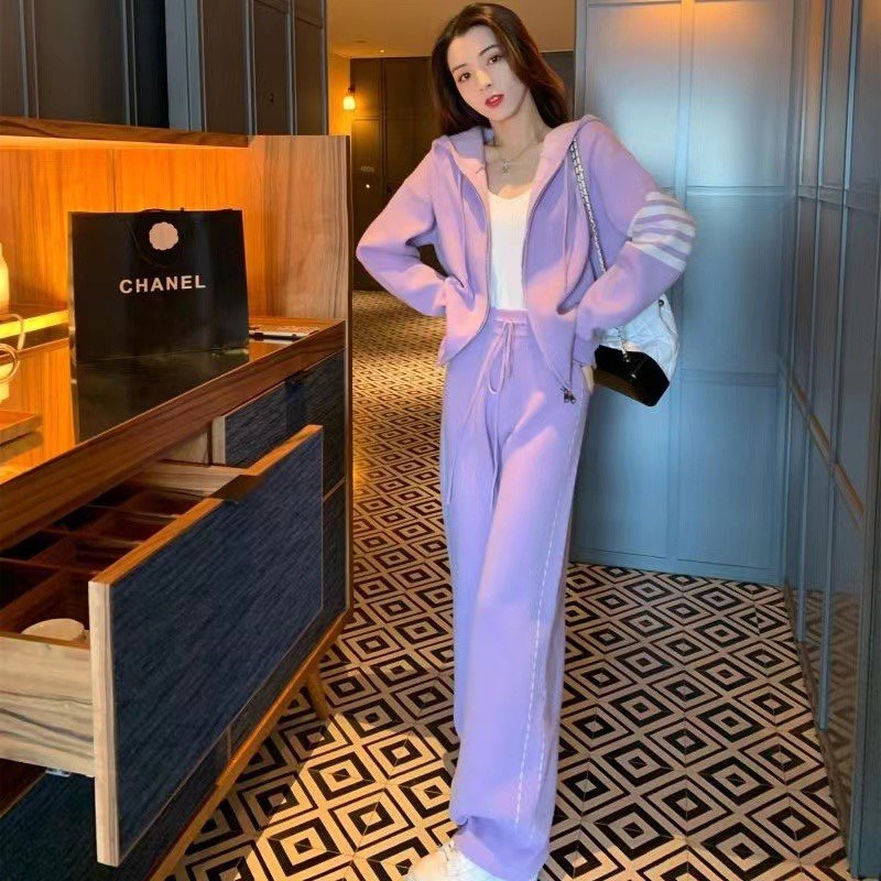 洋气减龄针织显瘦女阔腿裤 2025新款 时尚 女春季 两件套 休闲运动套装