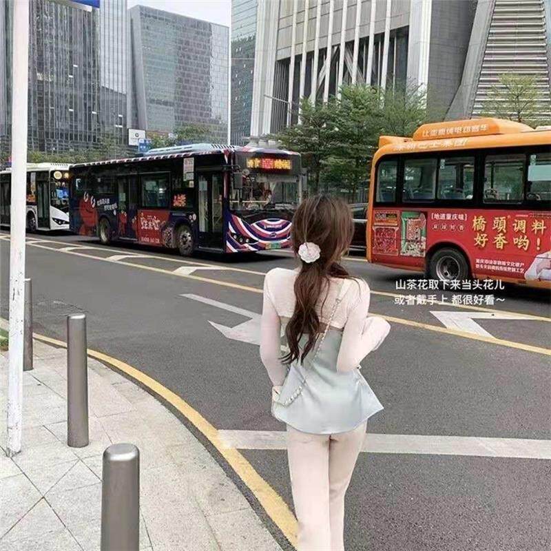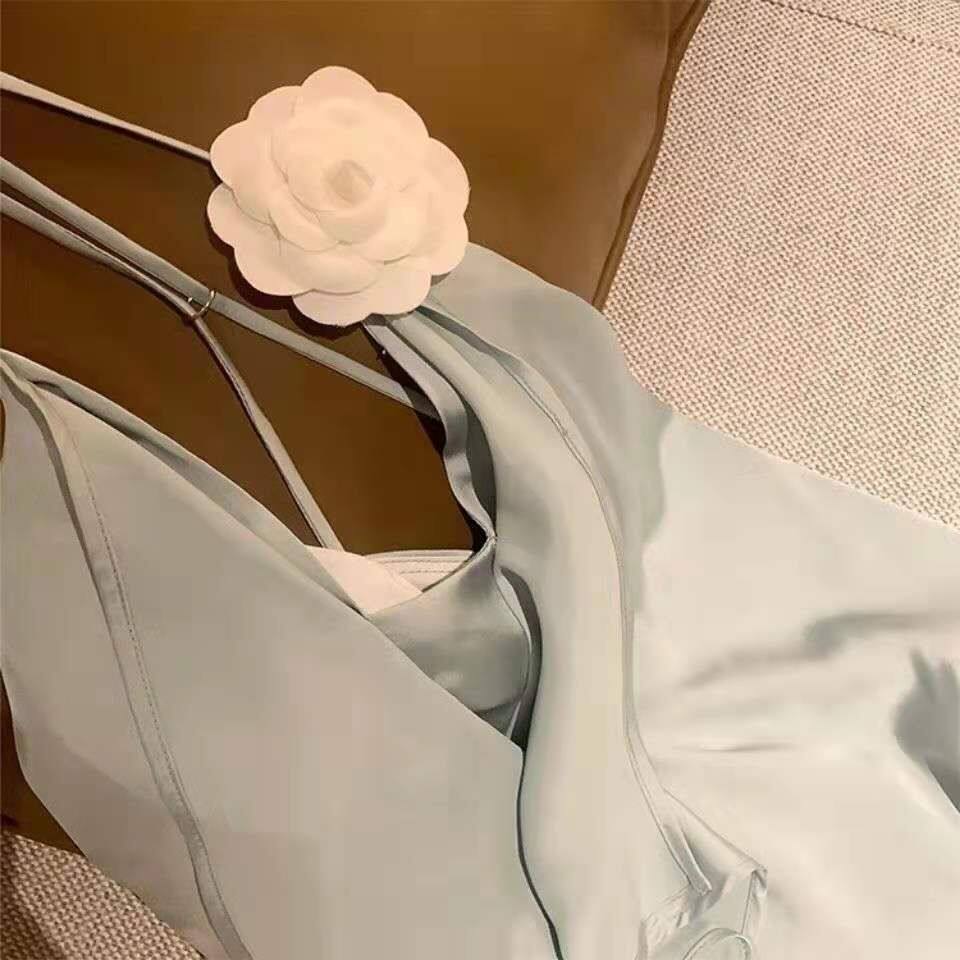 外穿无袖 缎面山茶花吊带背心设计感小众法式 露肩上衣 新款 2025夏季