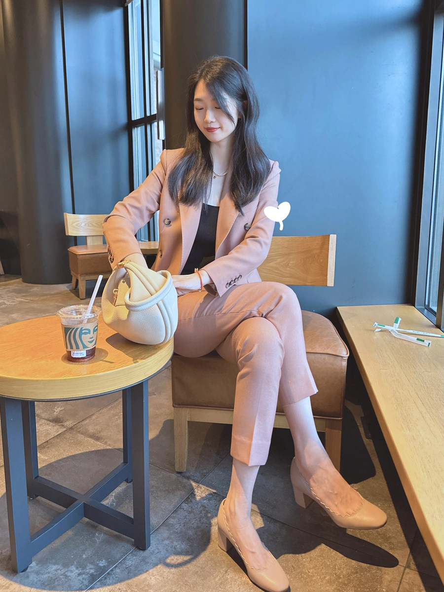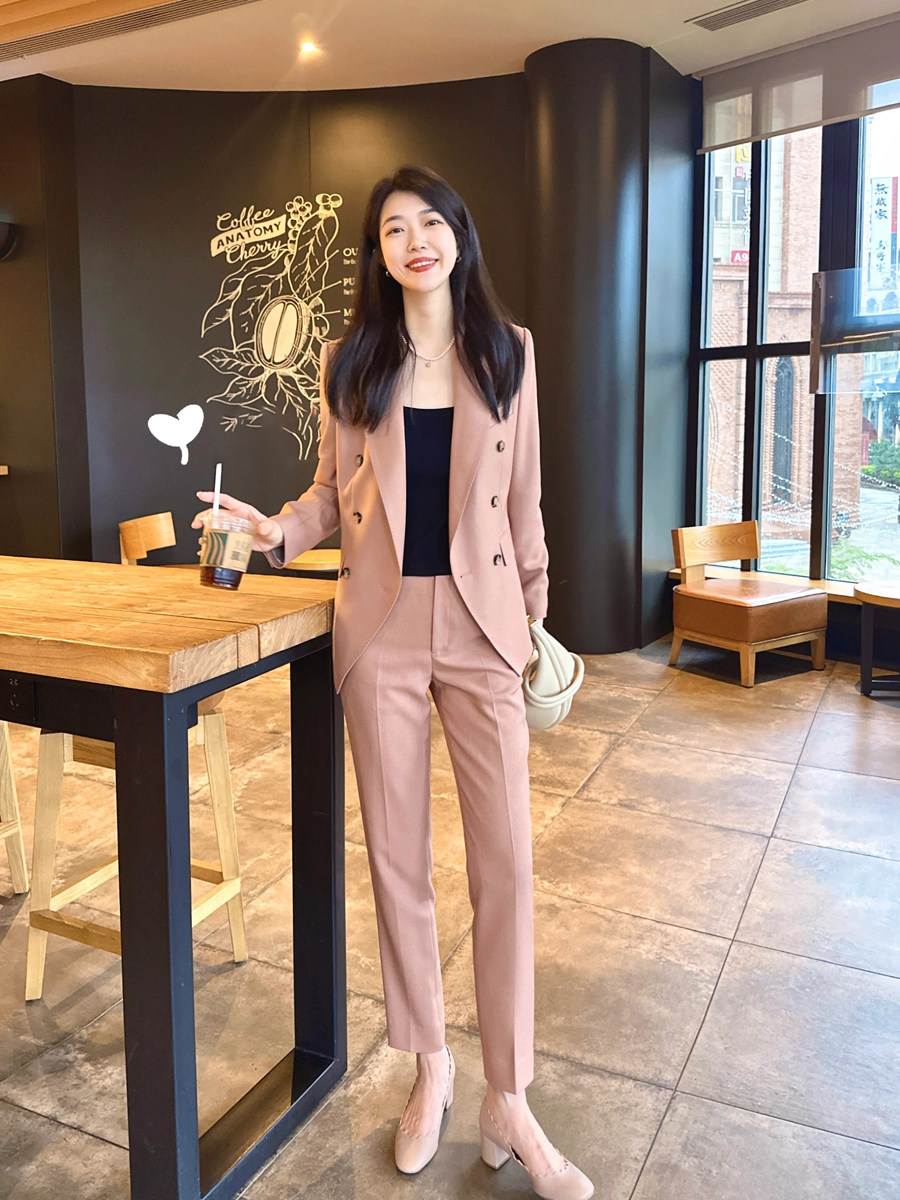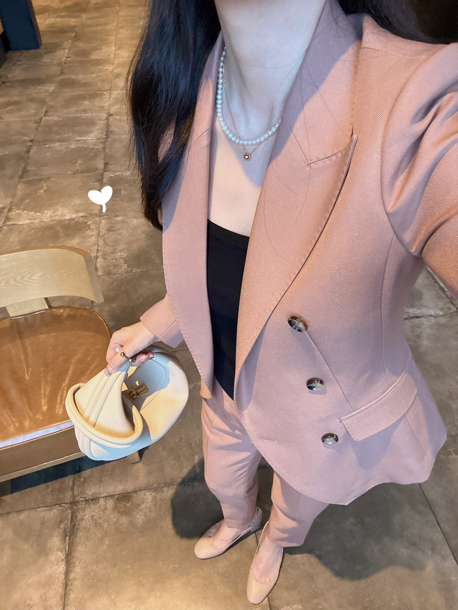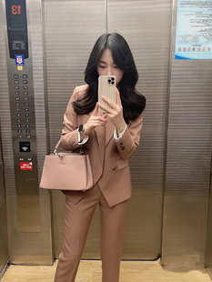 西服九分裤 春秋新款 高级感女装 两件套装 小个子 干枯玫瑰色职业西装