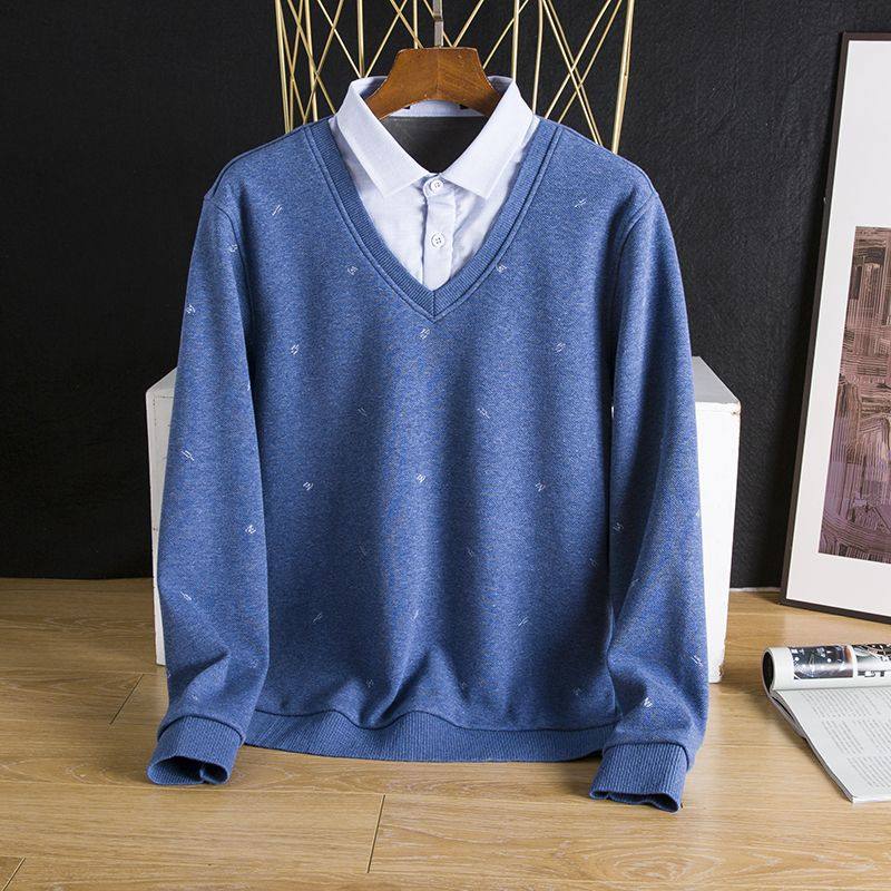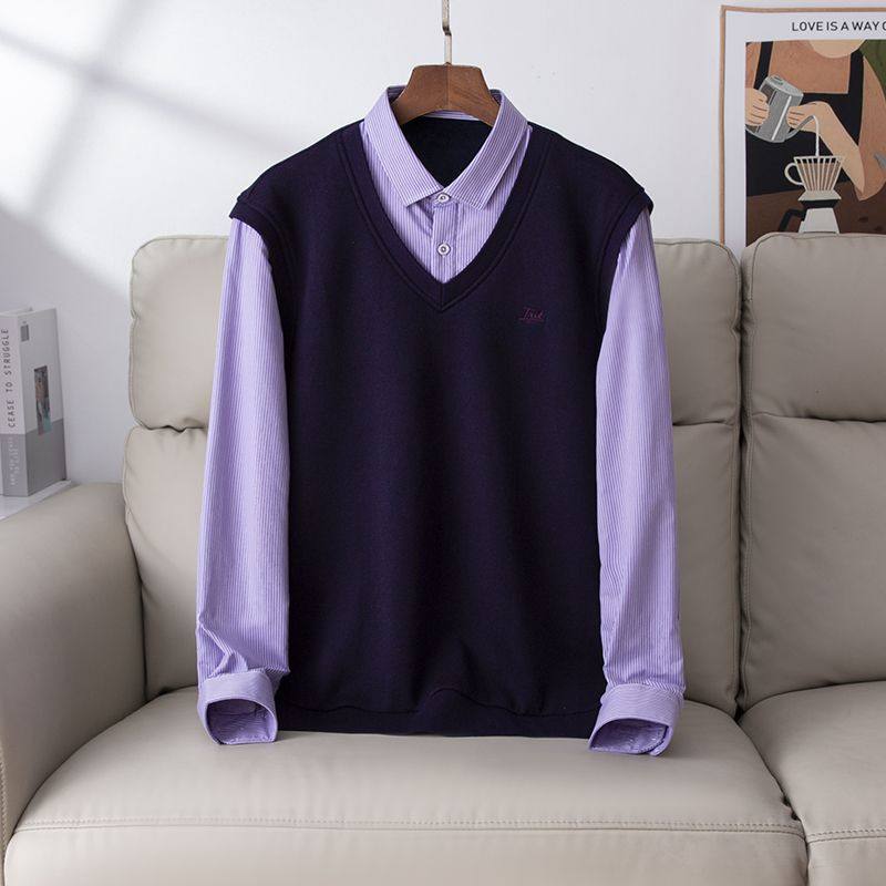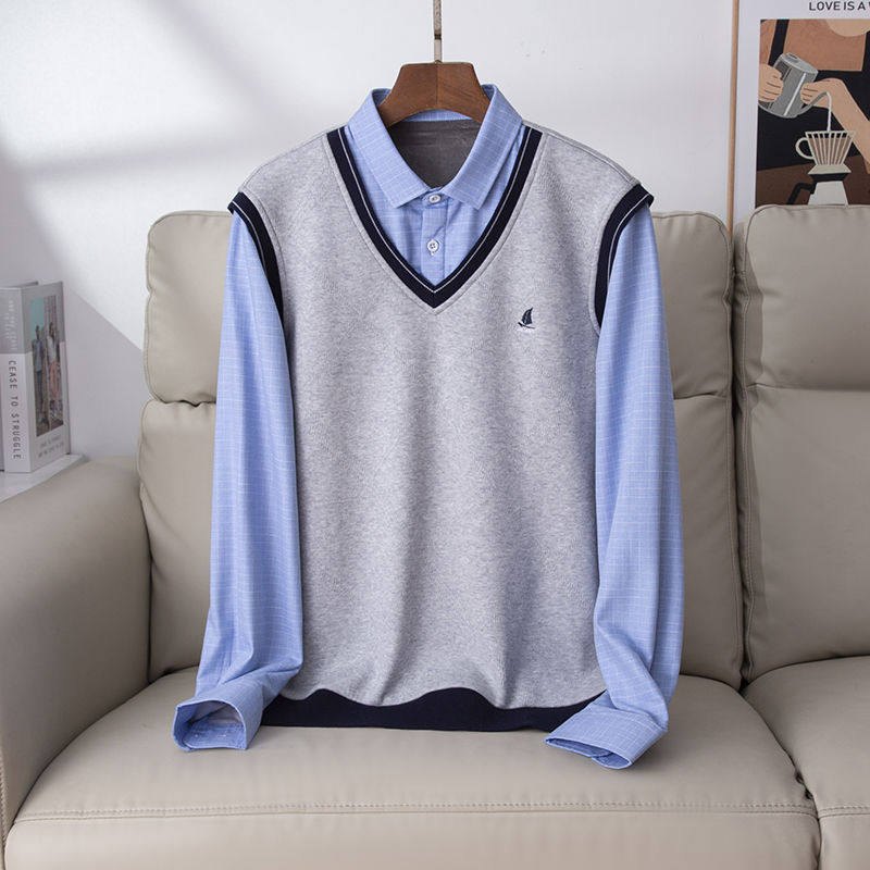保暖加绒假两件翻领针织衫 断码 外贸尾货秋冬款 福利清仓 男 捡漏