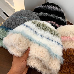 加厚毛绒绒针织帽子女秋冬款 显脸小保暖毛线帽大头围护耳帽潮 韩版