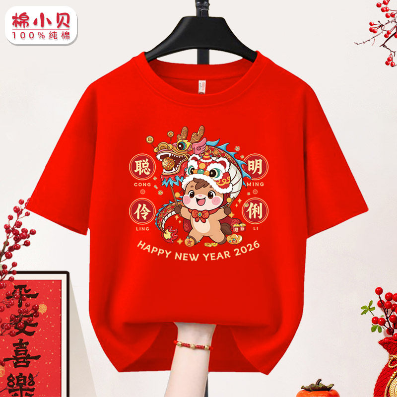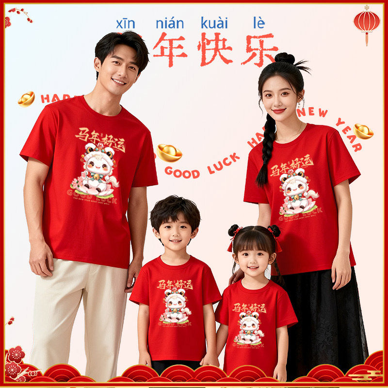 2026马年亲子装 t恤过年拜年服新年本命年母子母女全家福三口短袖