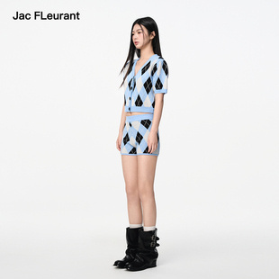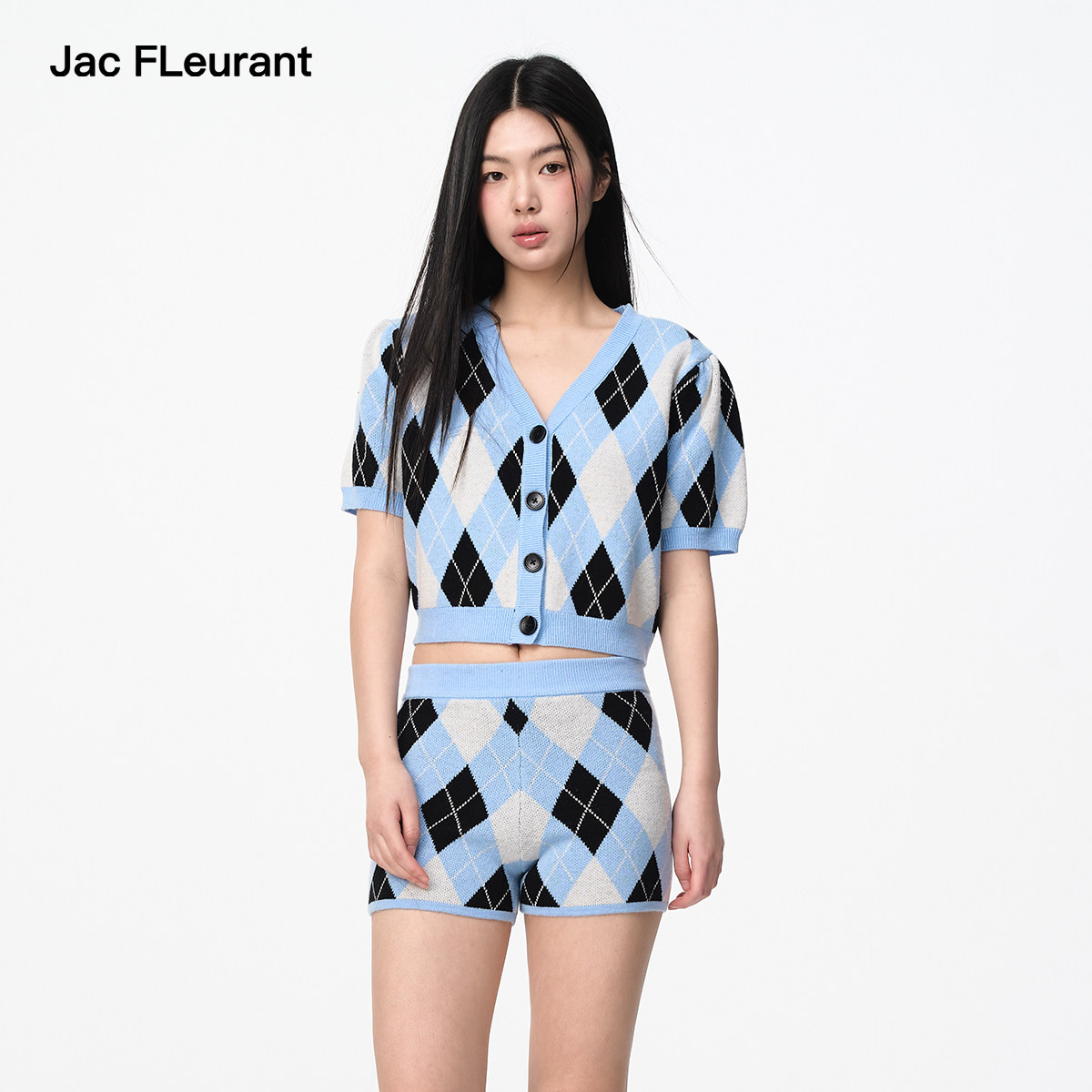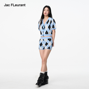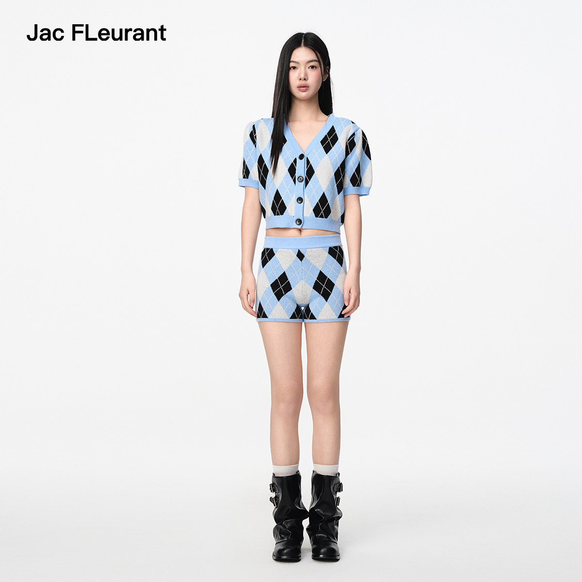 时尚 新款 套装 女菱形格针织开衫 JAC 上衣包臀短裤 FLEURANT2025秋季