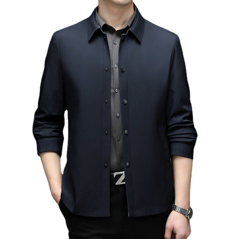 翻领纯色扣板中青年时尚 新款 潮流外套男 风衣夹克2023年春季 男士