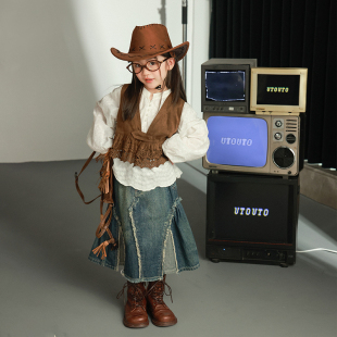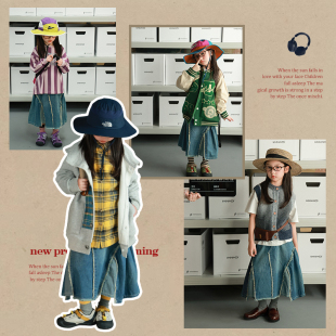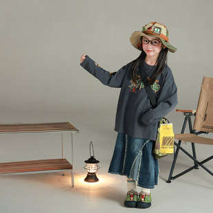 百搭半身裙子 宝儿个性 大耳象女童拼接牛仔半裙秋季 新款