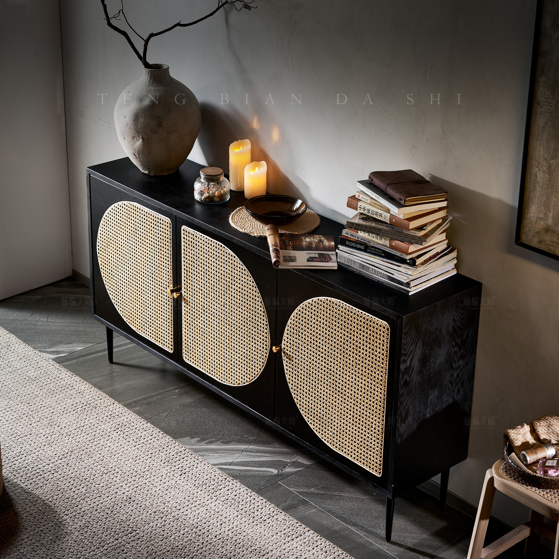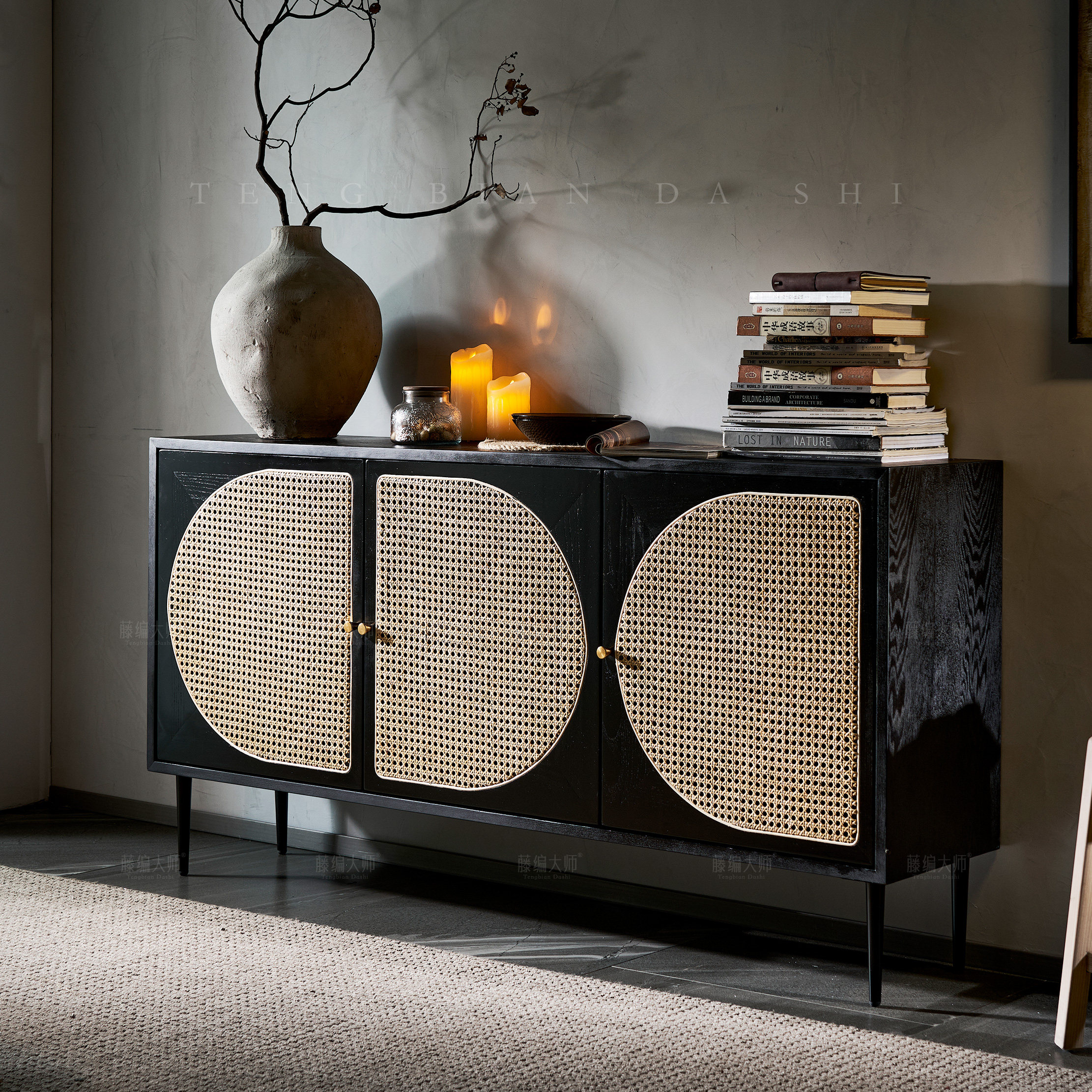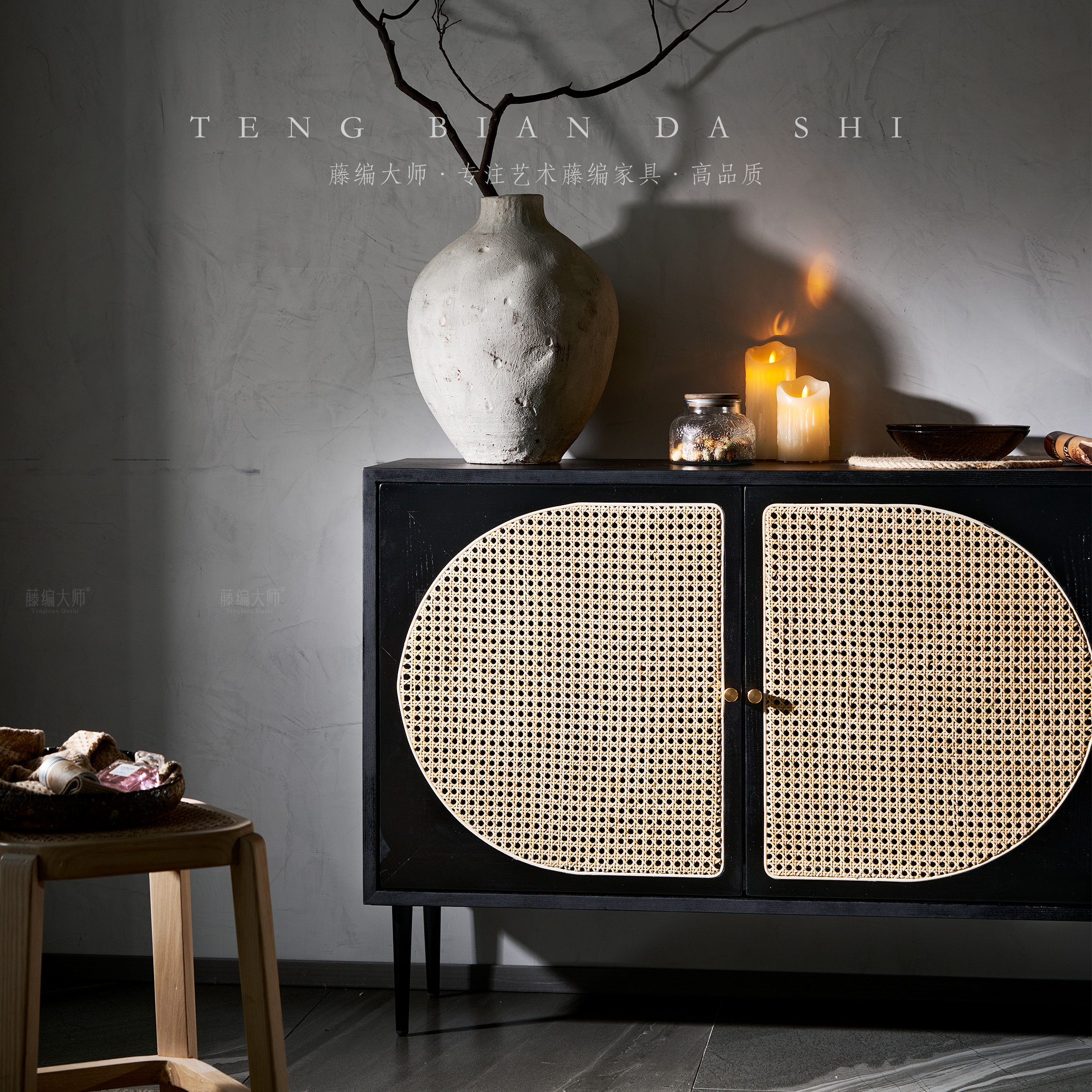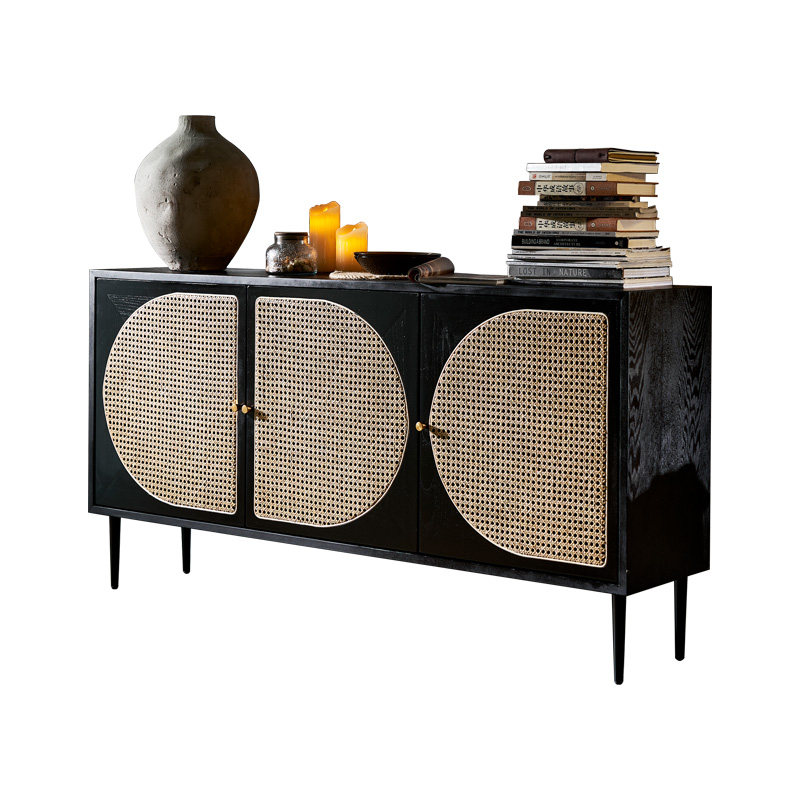 宋氏美学家用酒柜餐边柜一体靠墙中古藤编客厅茶水柜零食收纳柜