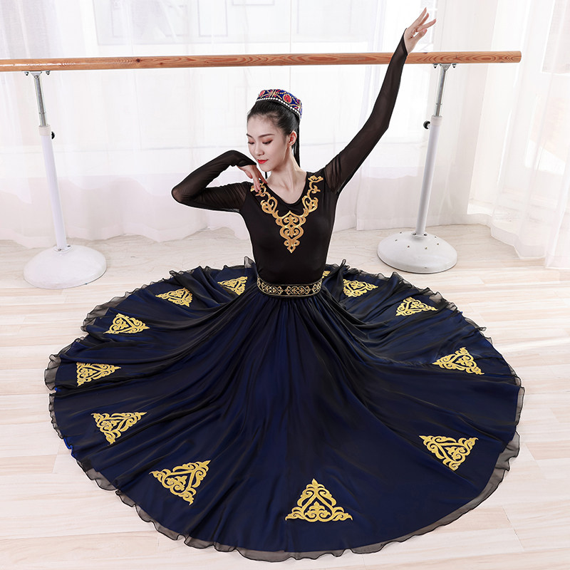 新款 维吾尔族服饰半身大摆裙 新疆舞蹈练习裙维族舞艺考演出服装