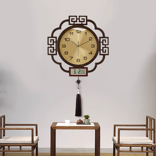 家用钟表挂钟客厅新中式 饰时钟挂表 创意现代简约石英钟静音复古装