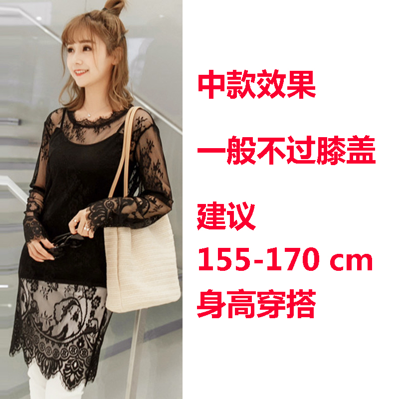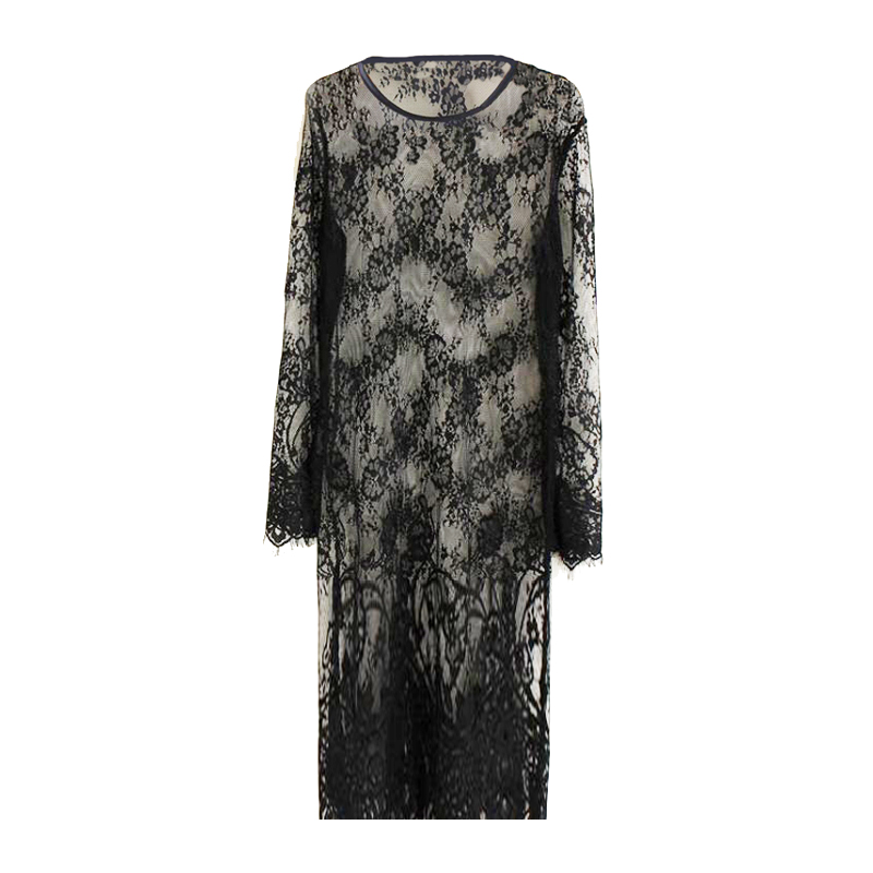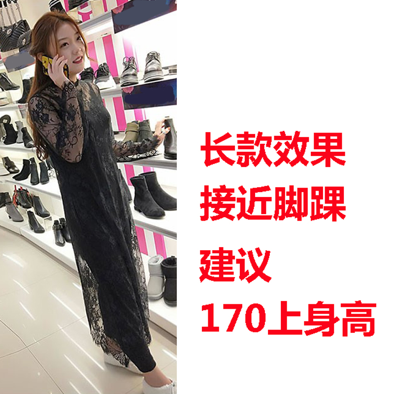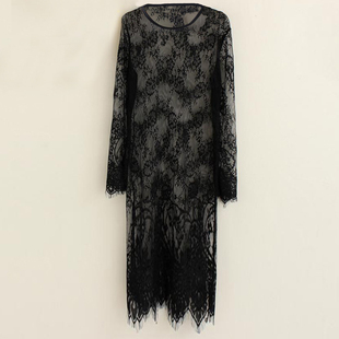 薄纱透网软和过膝无内衬单层淑女罩裙 蕾丝连衣裙长袖 春夏新品 长款