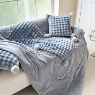 纯色双面加厚牛奶绒抱枕被子两用汽车上办公室保暖靠垫枕头被毯冬