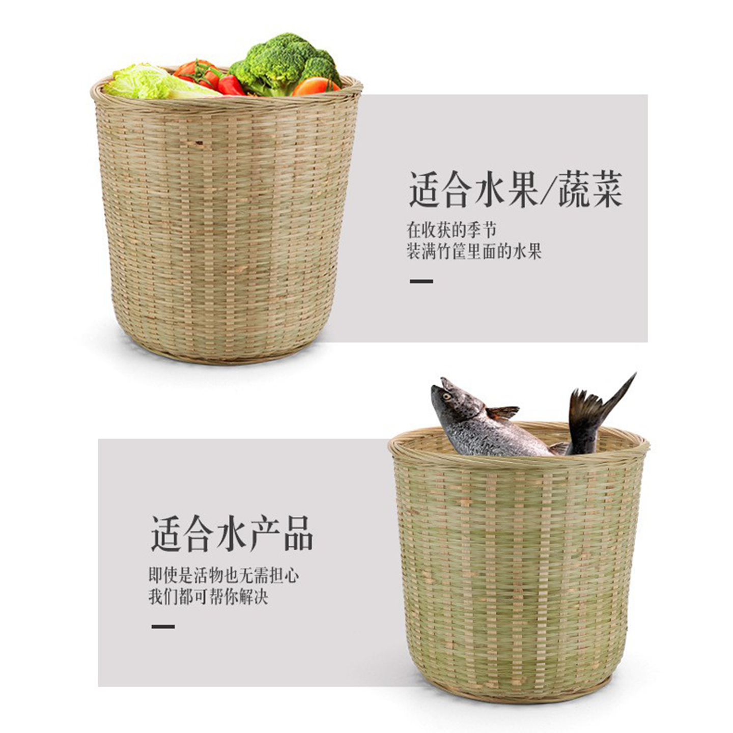 竹编圆桶竹筐家用收纳水果蔬菜篮大箩筐垃圾篓商用厨房沥水篮大小