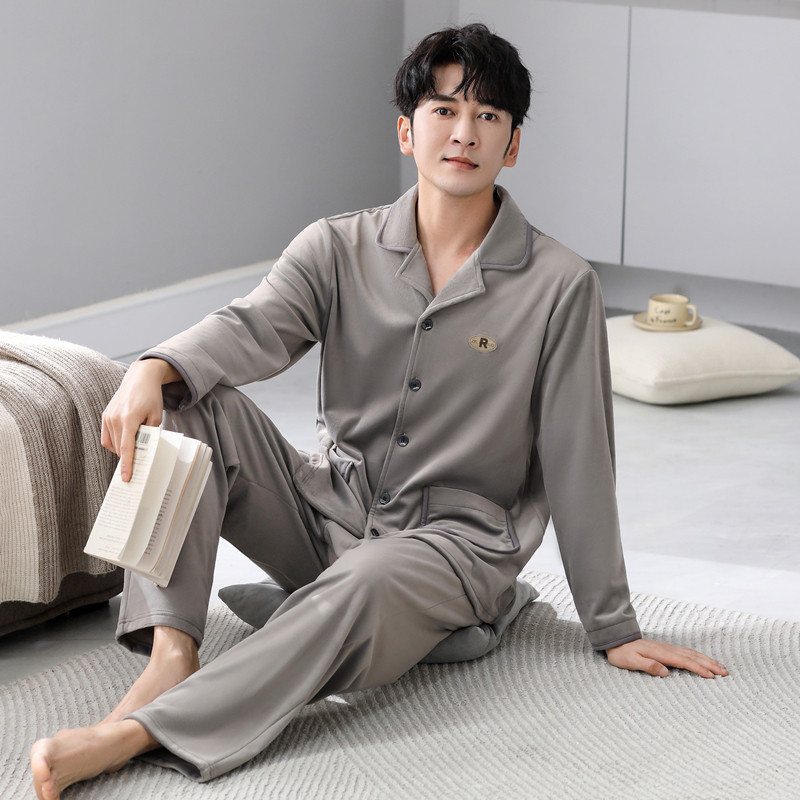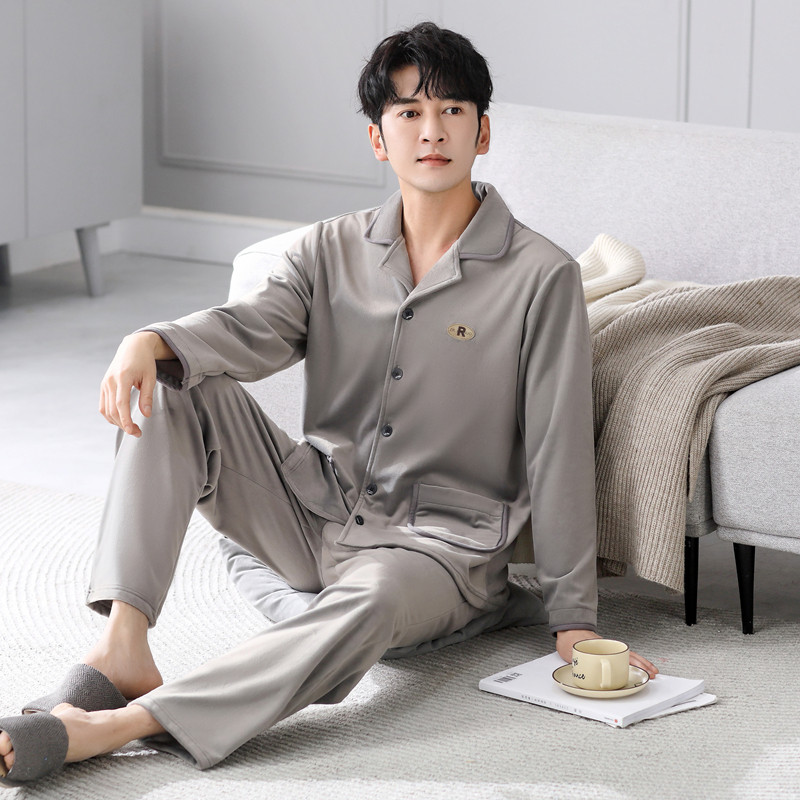 自信家居服秋冬款 睡衣男款 珊瑚绒加绒加厚法兰绒冬天套装 冬季 男士