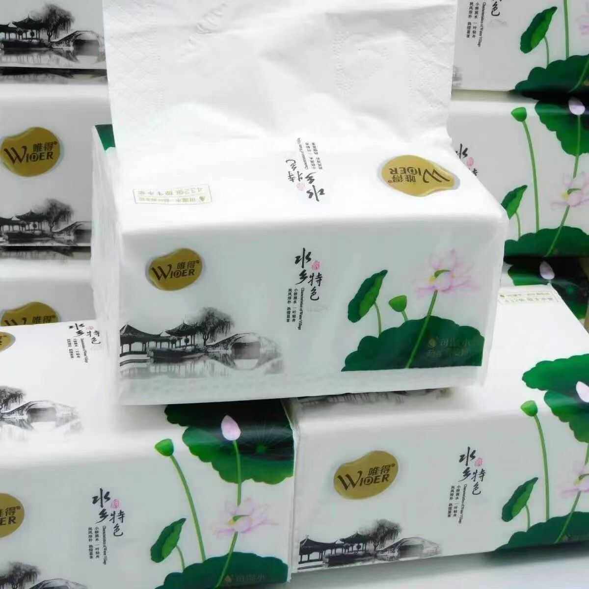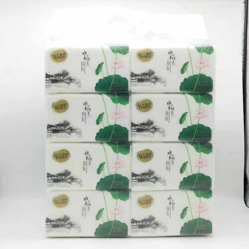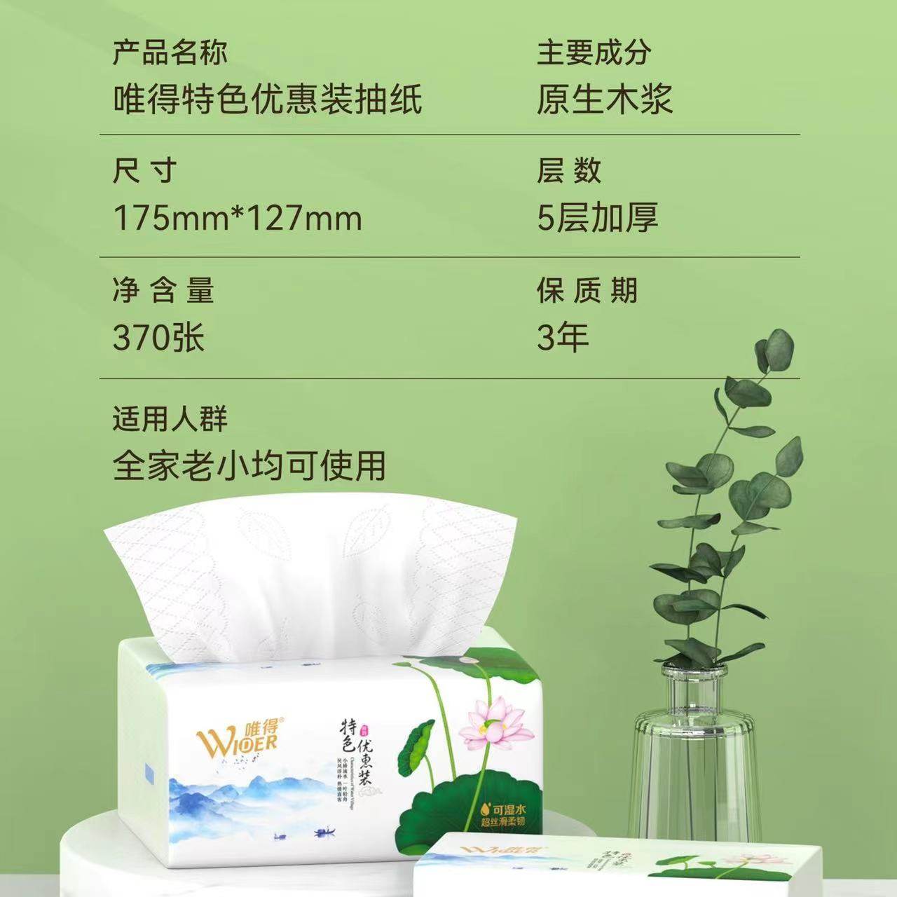 唯得水乡特色荷花8包装 抽纸370张加厚5层可湿水家用餐巾纸优惠装