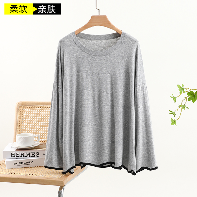 T恤 可外穿长袖 莫代尔圆领飞边上衣女秋薄款 宽松居家睡衣休闲大码