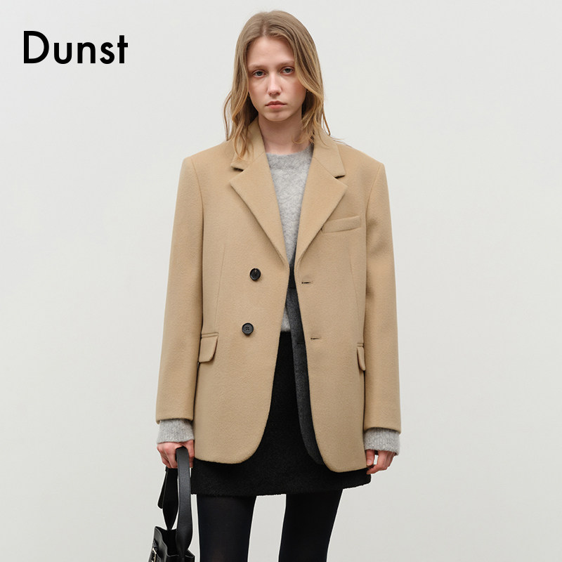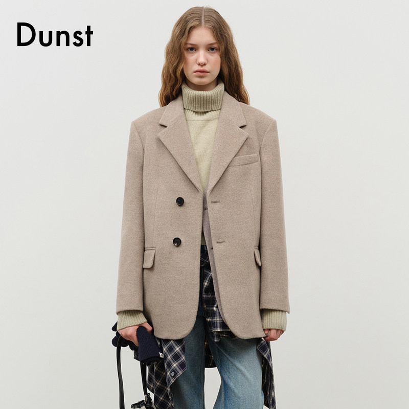 西装 微胖mm秋冬宽松正肩长短款 毛呢大衣外套 百分百女装 DM100大码