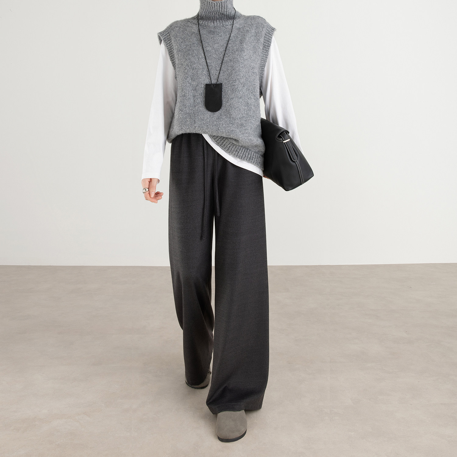 秋慵懒高腰垂感宽松抽绳显瘦糯米拖地裤 灰色羊毛阔腿裤 女2025新款