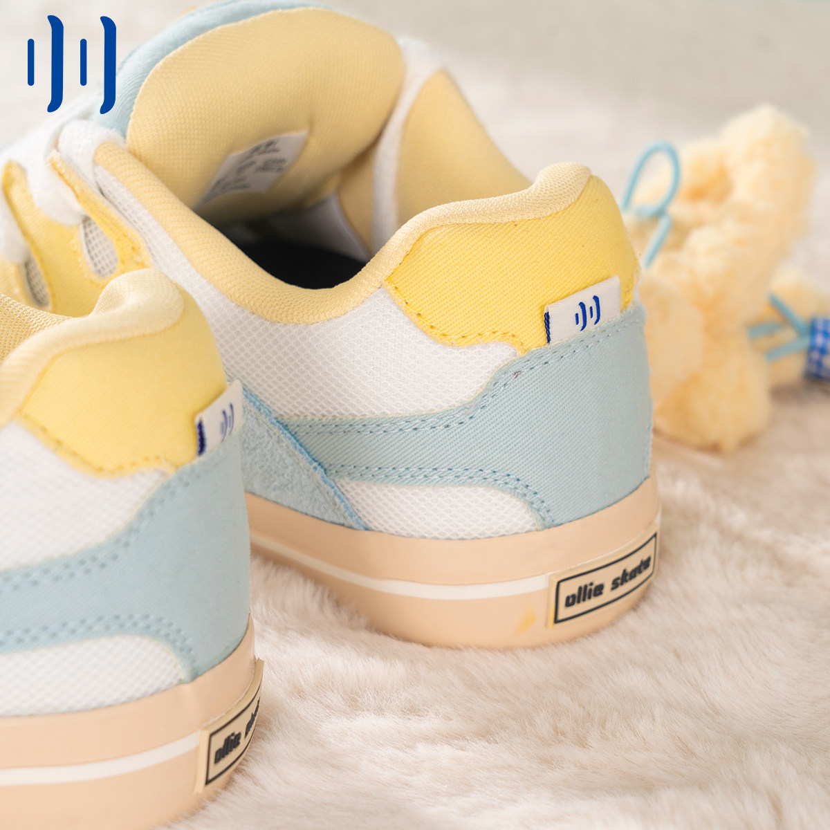 顽刻ollieskate面包鞋 遇见小咪蓝黄白配色BAKE复古男女国潮滑板鞋