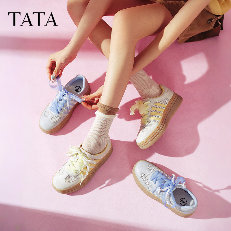 子W9B02 女红色新年增高厚底板鞋 TATA他她乌梅子酱女鞋 复古德训鞋