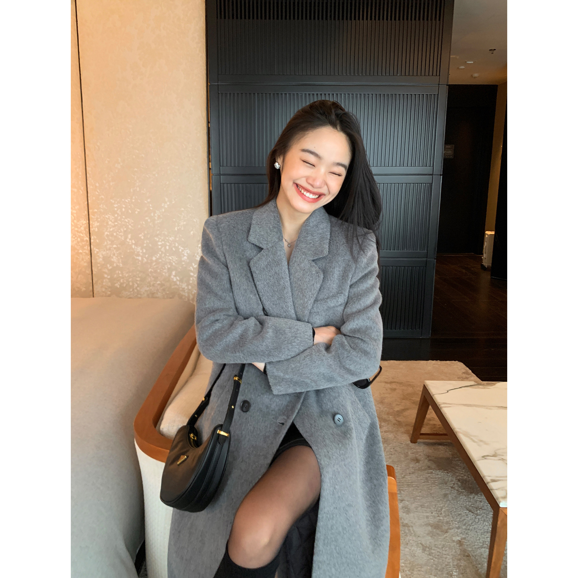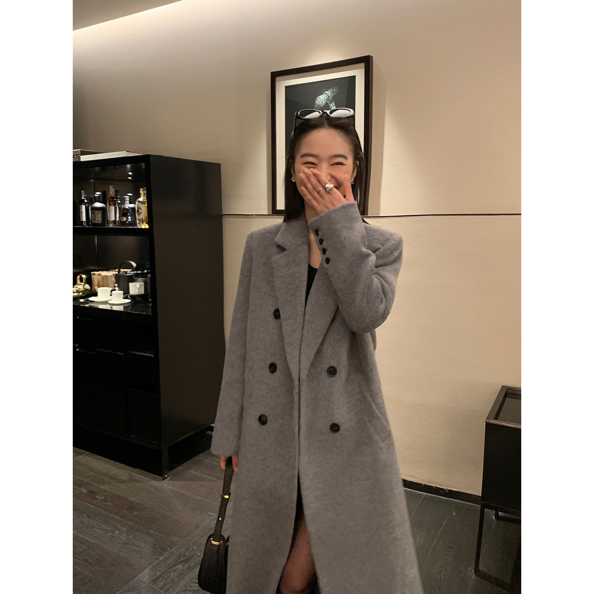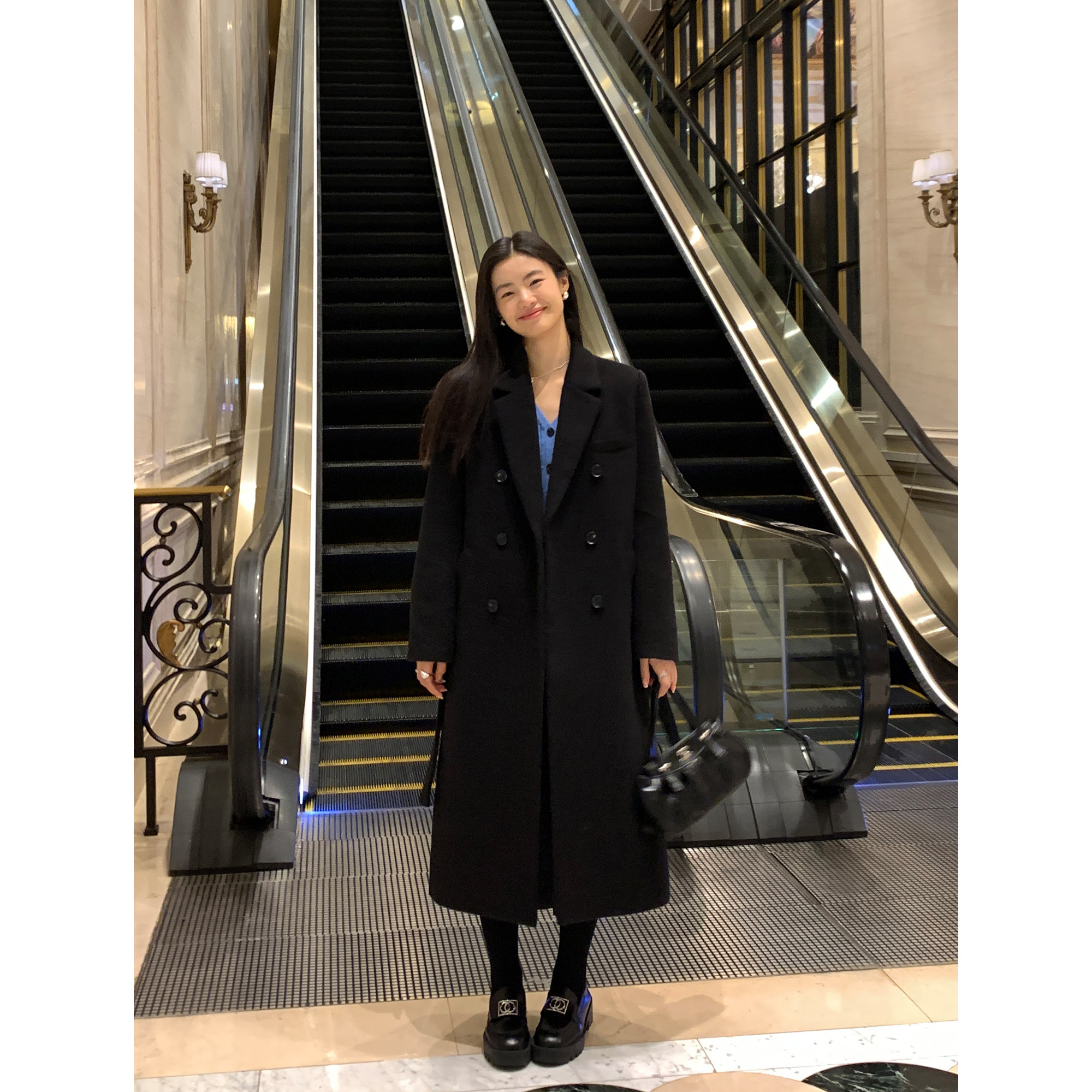 大衣 黑色毛呢外套女宽松高级感气质夹棉长款 pusumede 现货5折