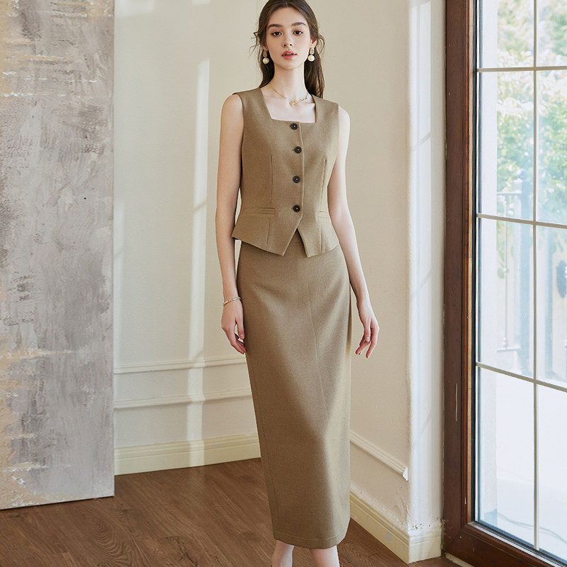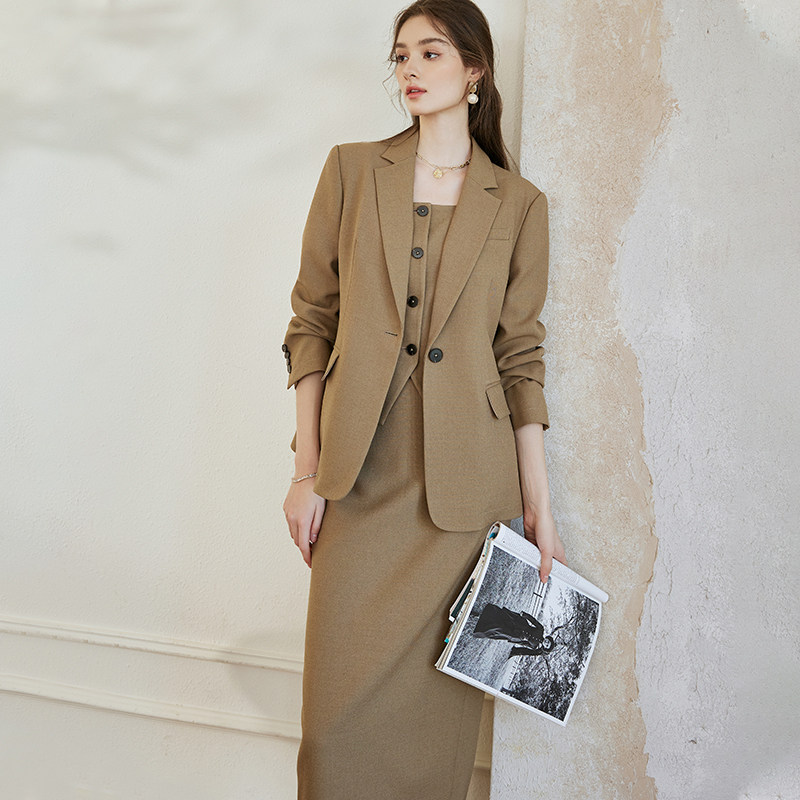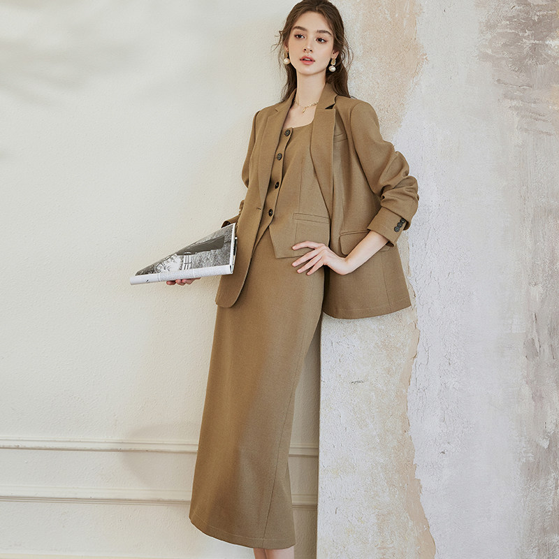 三件套套裙10135 商务职业卡其色修身 罗衣高级通勤套装 女2025秋装