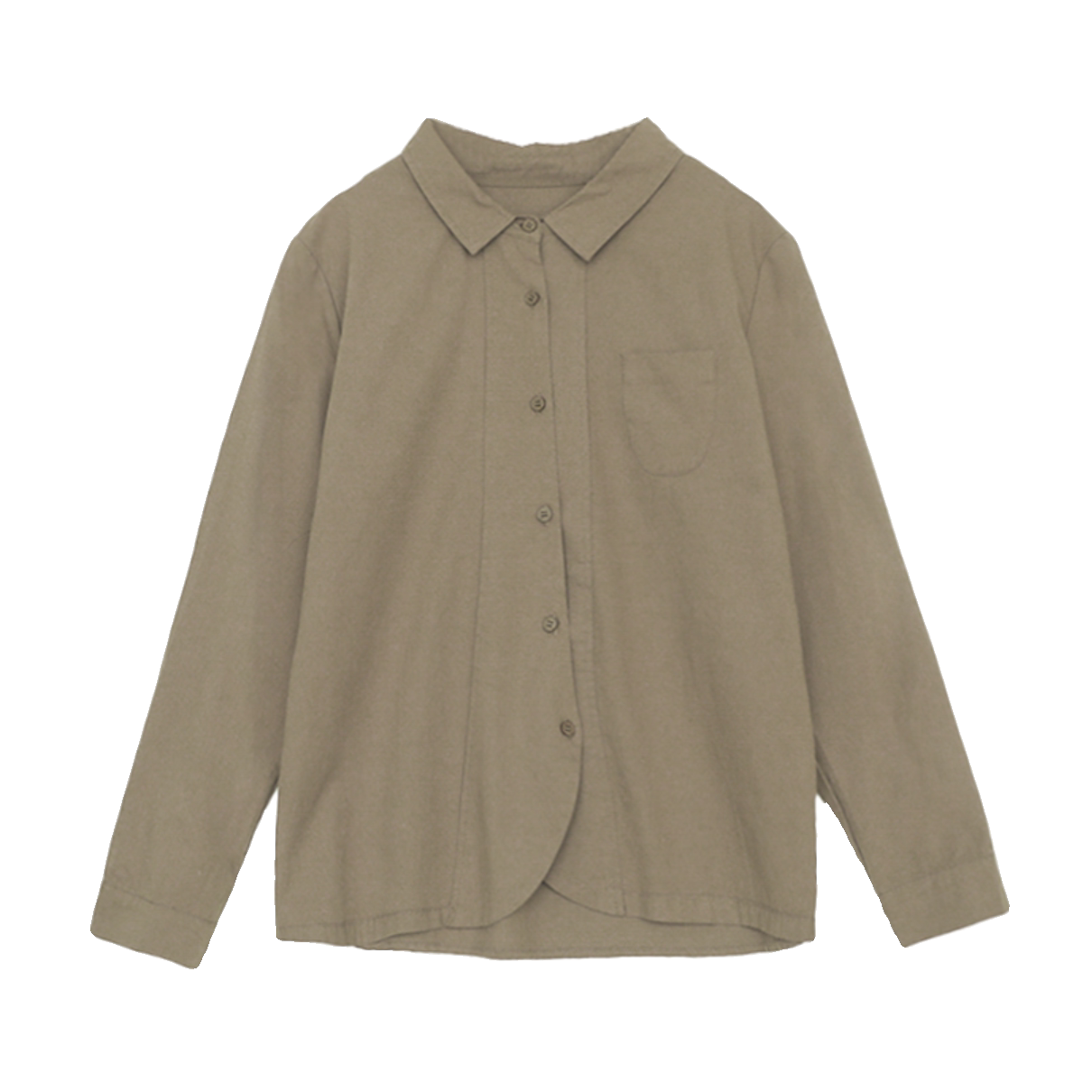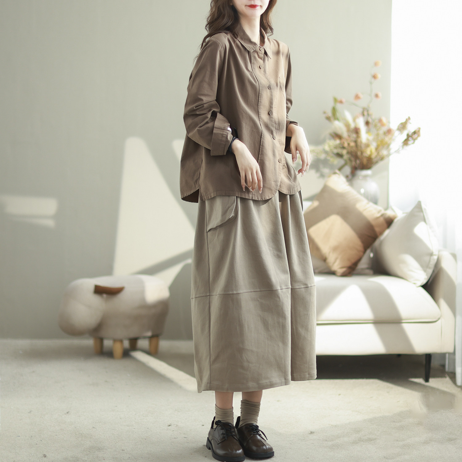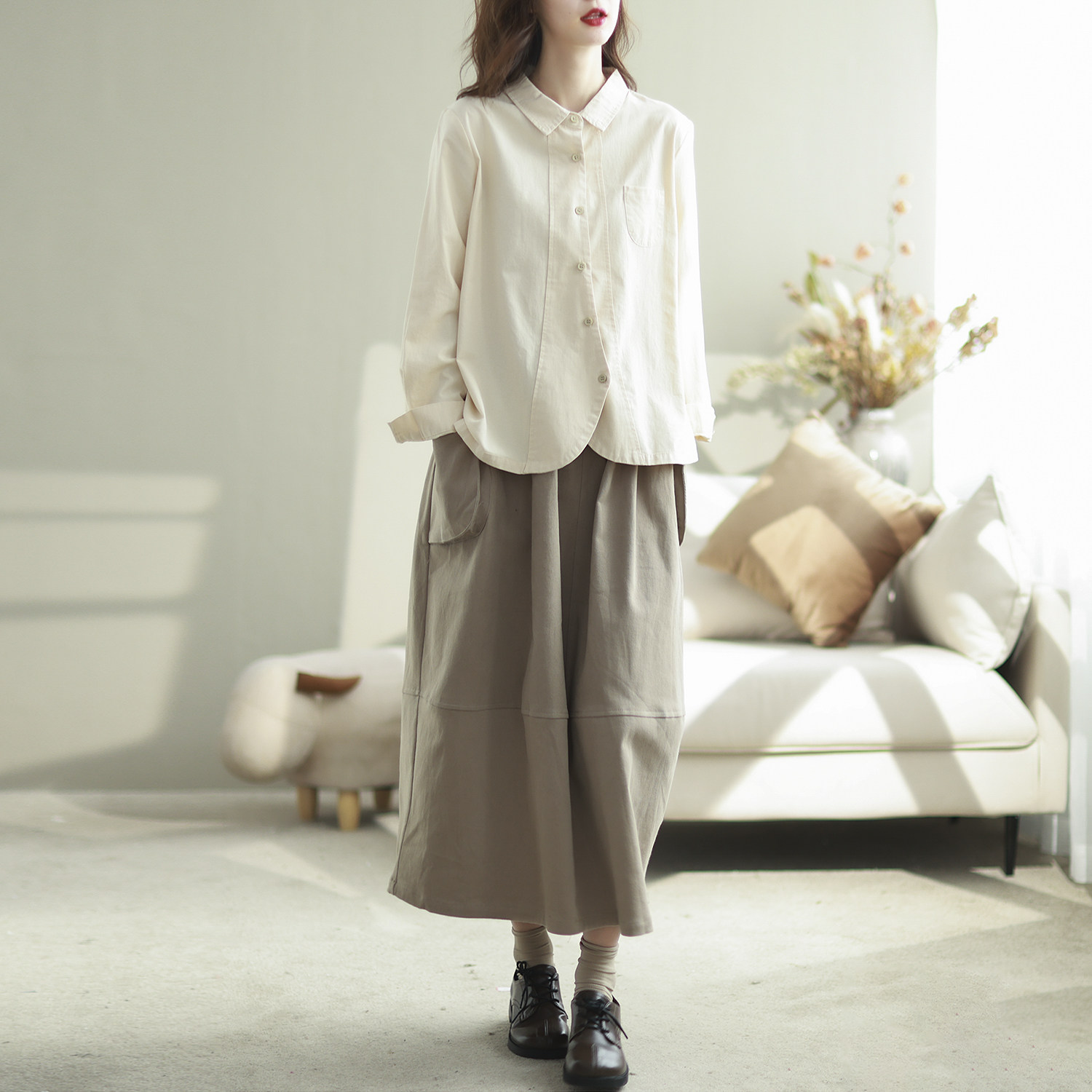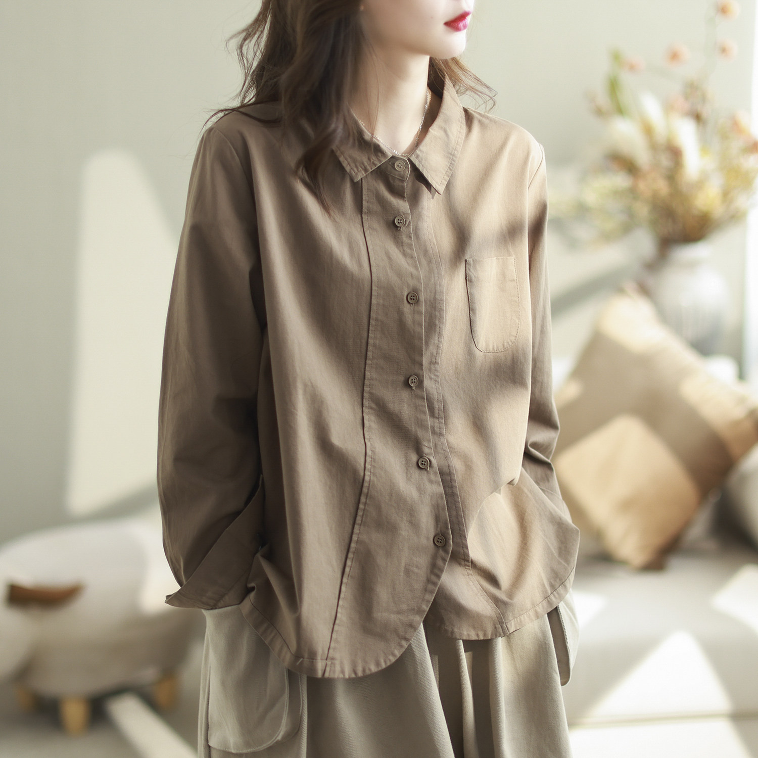 衬衣潮 纯色拼接polo领长袖 文艺全棉宽松显瘦设计感衬衫 上衣女春季