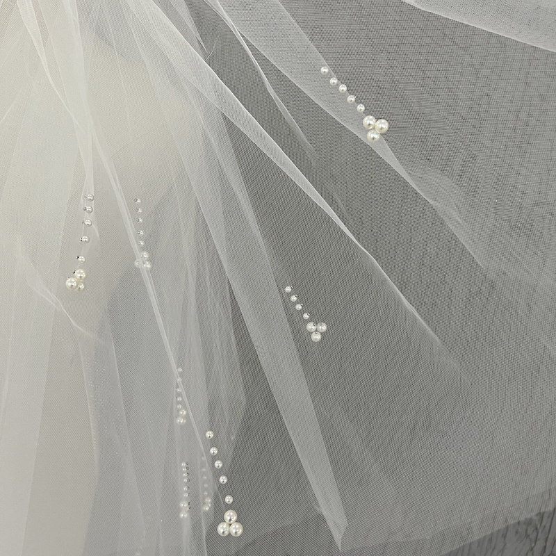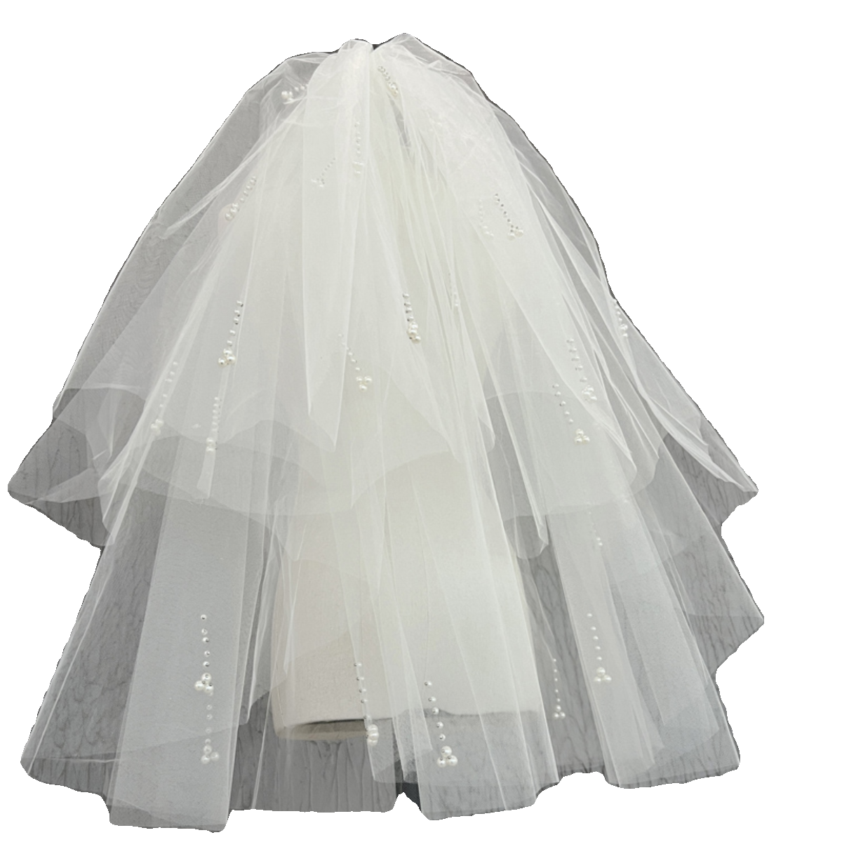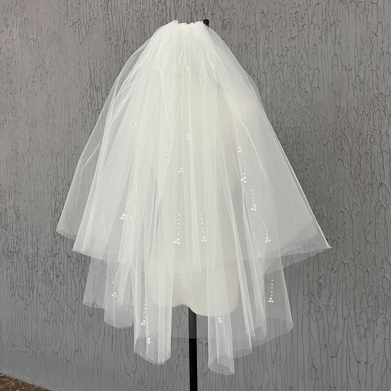 新娘结婚主婚纱头纱双层网红拍照道具短款 蓬蓬闪闪珍珠头纱头饰女