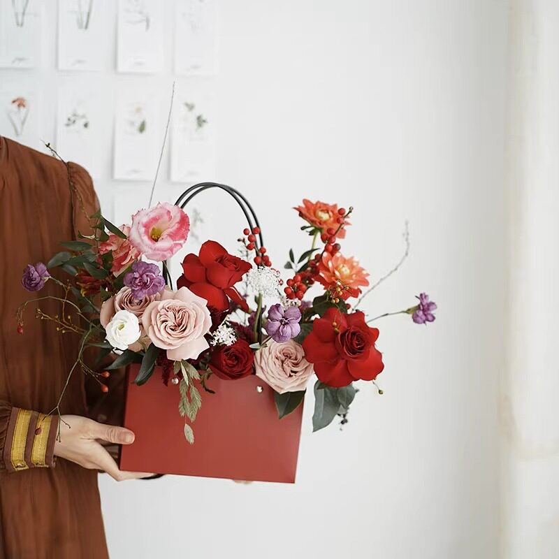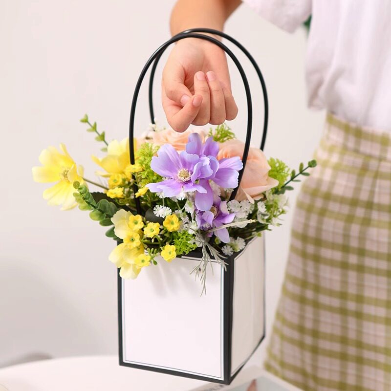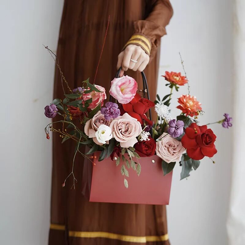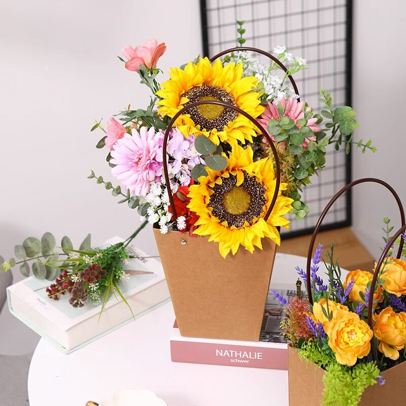 手提插花袋鲜花包装 盒防水牛皮纸花束小花篮花盒花艺diy材料全套