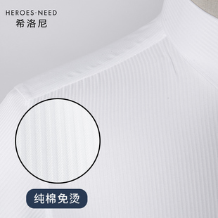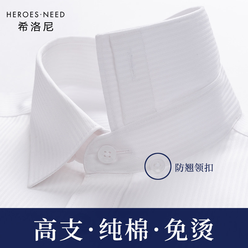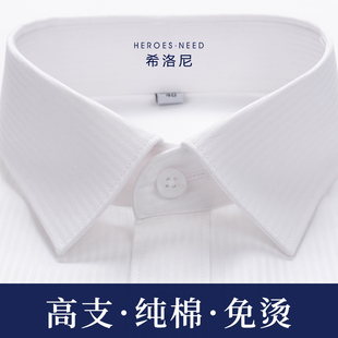 全棉隐暗纹高级感提花大码 长袖 衬衣 衬衫 HN纯棉商务白色暗条纹男士