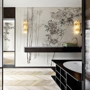 新中式 手绘竹子背景墙壁布墙纸3d茶室中国风墙布客厅大气竹林壁纸