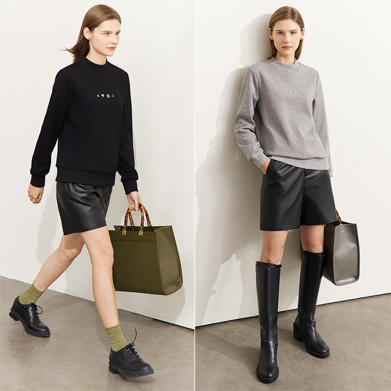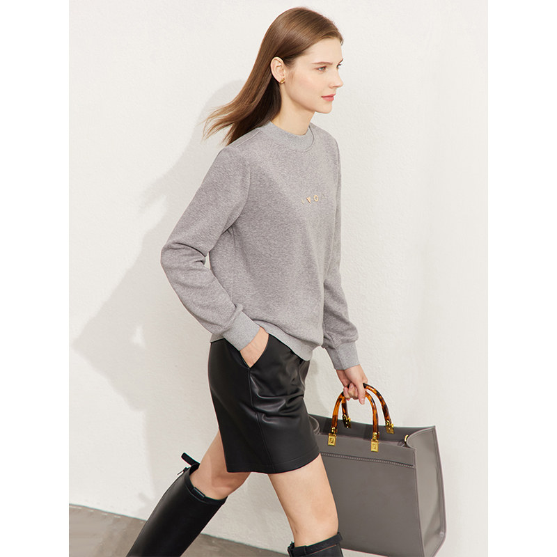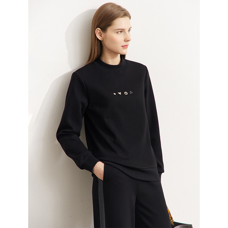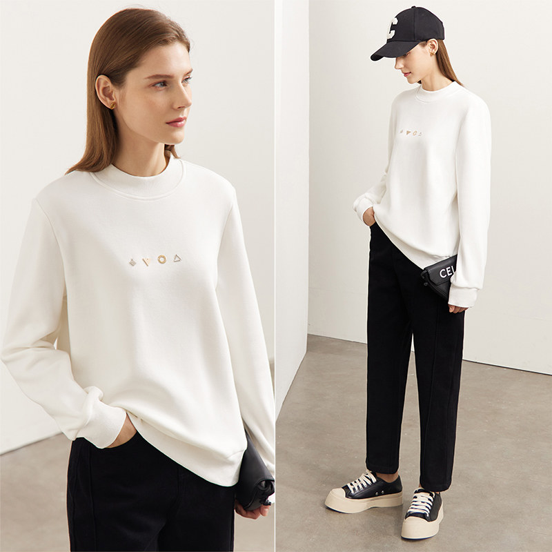 Amii2025冬季 半高领卫衣高级感超好看金属挂件女加绒宽松上衣 新款