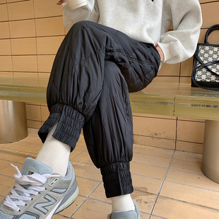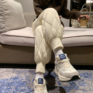 女士加绒加厚保暖棉裤 宽松2025年新款 女冬外穿时尚 菱格轻薄羽绒裤