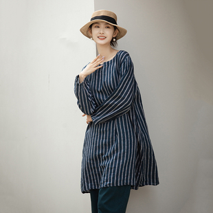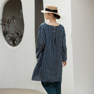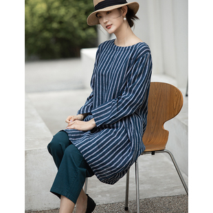 宽松显瘦休闲文艺百搭大码 女装 T恤 新款 冉裳原创麻上衣女2024秋季