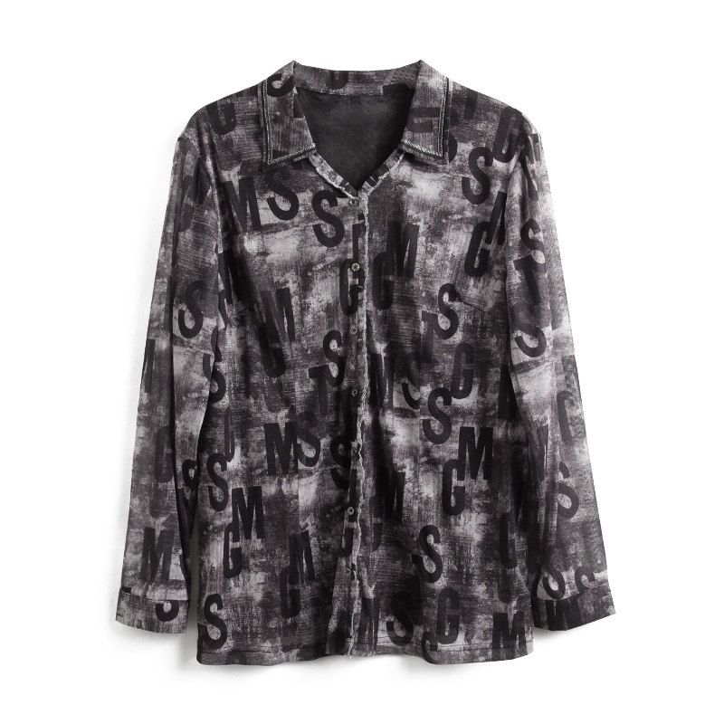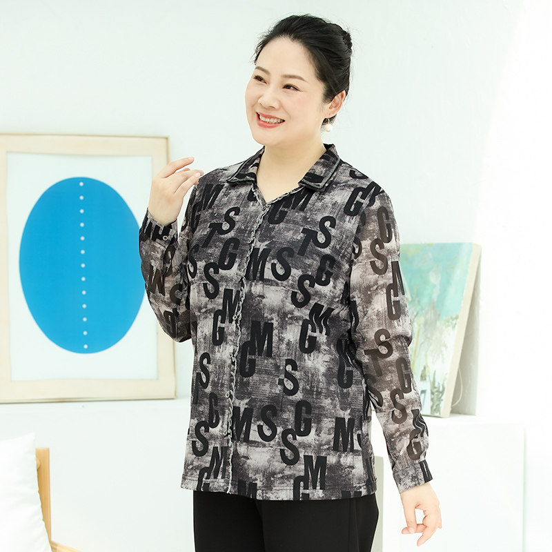 OL气质衬衫 胖太太大码 字母图案小翻领长袖 秋冬新品 822307710 女装