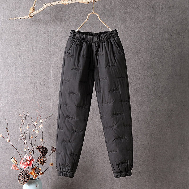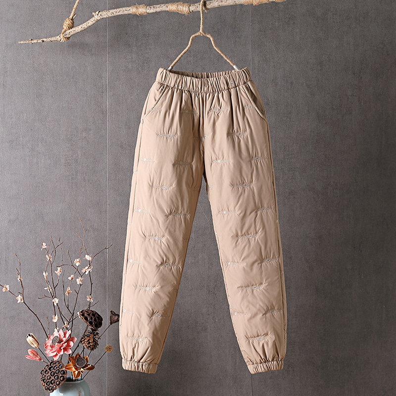 保暖宽松高腰刺绣束口妈妈棉裤 羽绒棉裤 加厚灯笼裤 大码 女外穿冬季