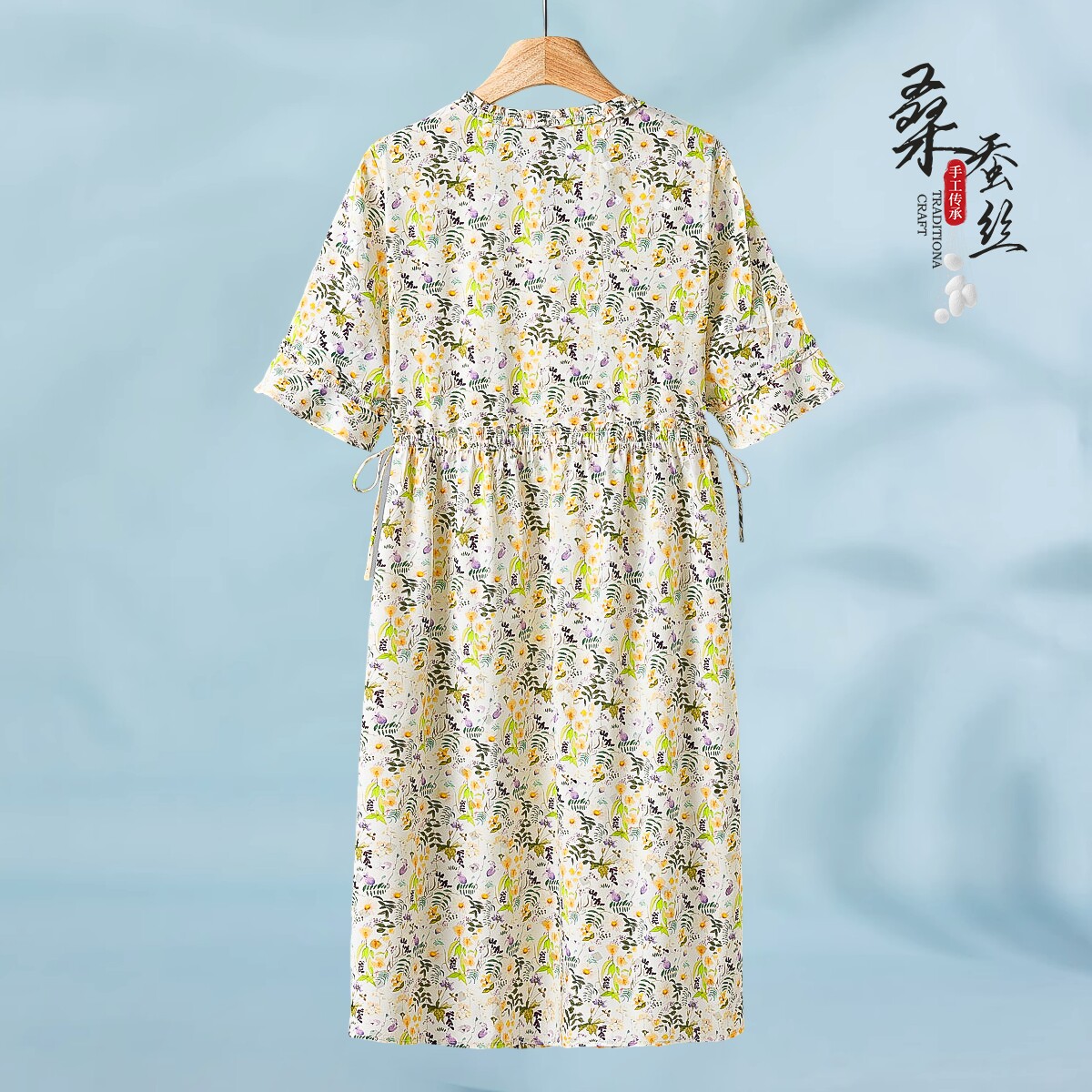 92%桑蚕丝 花边V领喇叭袖 绘 法式 可收腰连衣裙300弜 夏装 3999