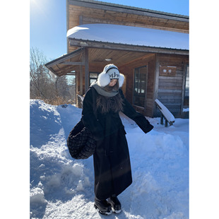 黑色双层羊毛毛呢外套女秋长款 金敏喜大衣经典 外套 Lin Xinlei