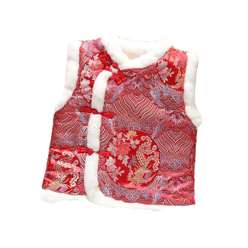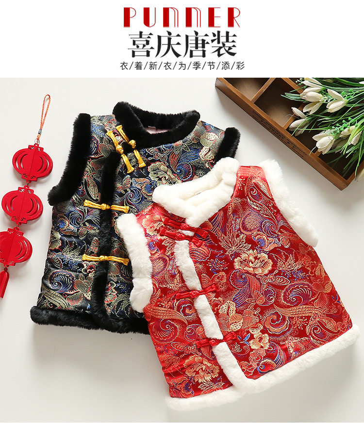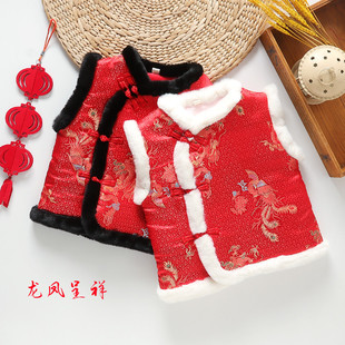 宝宝过年服唐装 汉服男童女童国风拜年背心 马甲加绒加厚婴儿新年装