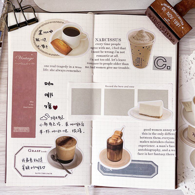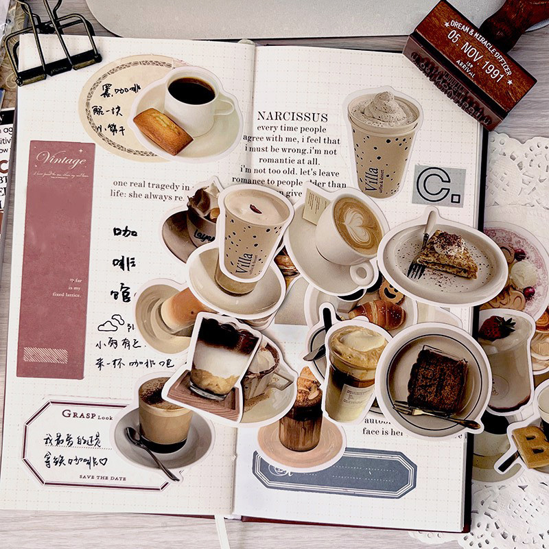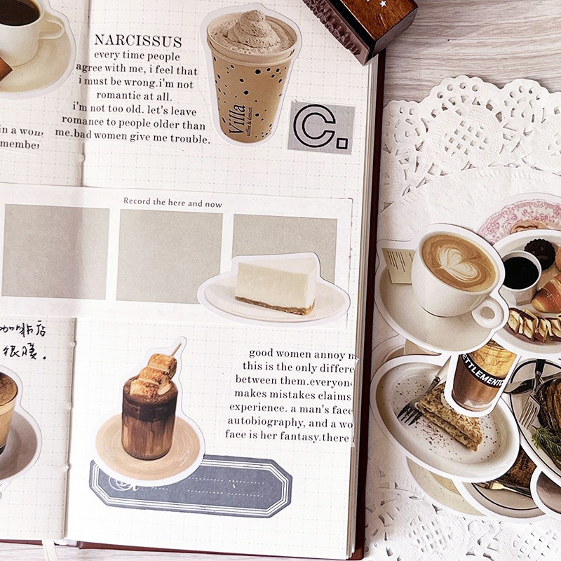 简洁ins生活日常奶茶饮料甜点装 套装 饰 时光手账贴纸包 咖啡馆