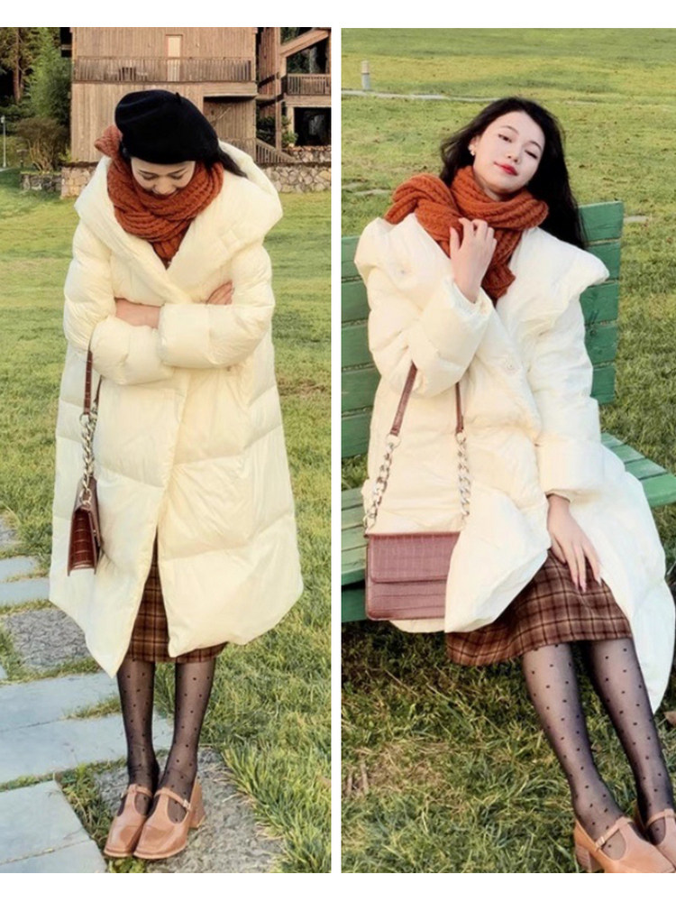 新白色长羽绒服女好看加厚外套 2025年冬季 DPLAY 90鸭绒