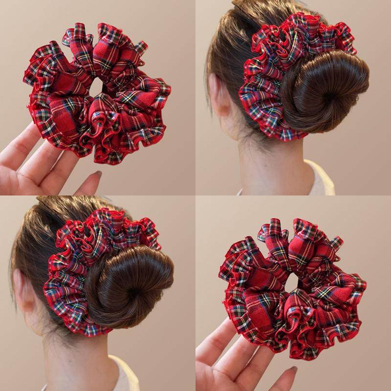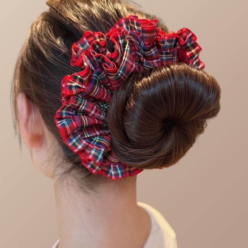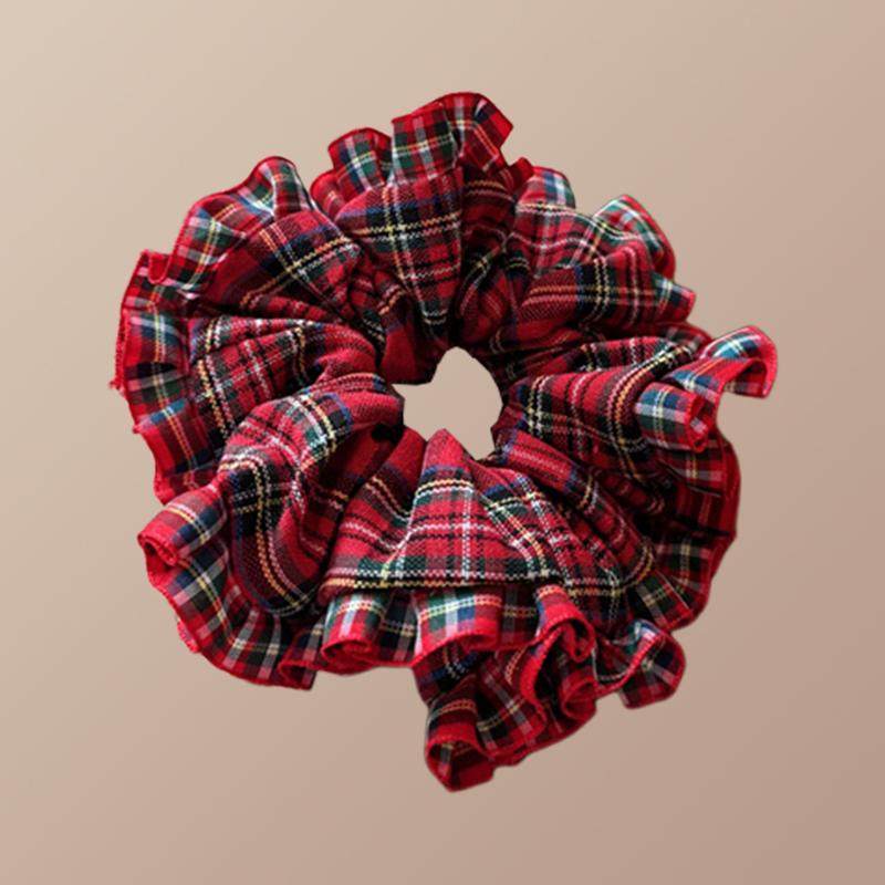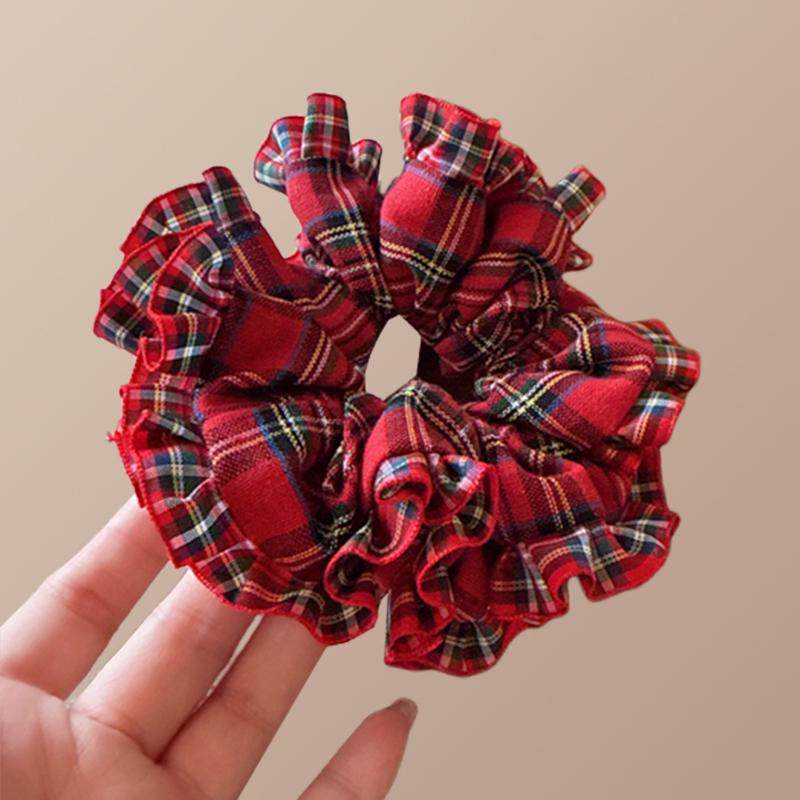 英伦风圣诞红色格子学院风发圈复古秋冬大肠圈发绳扎马尾丸子头饰