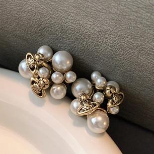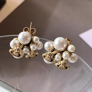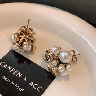 秋冬后挂式 闪锆雪花珍珠耳钉女高级感小众气质耳环独特圣诞节耳饰