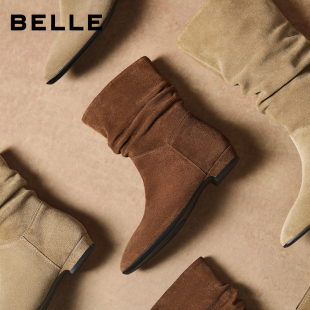任素汐同款 高筒靴堆堆长筒靴 百丽女靴子复古美拉德西部靴新款