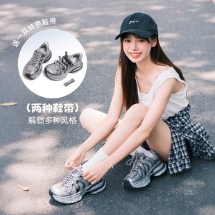 女2025厚底增高 骆驼银月2代秋冬加绒银色老爹鞋 迪丽热巴同款