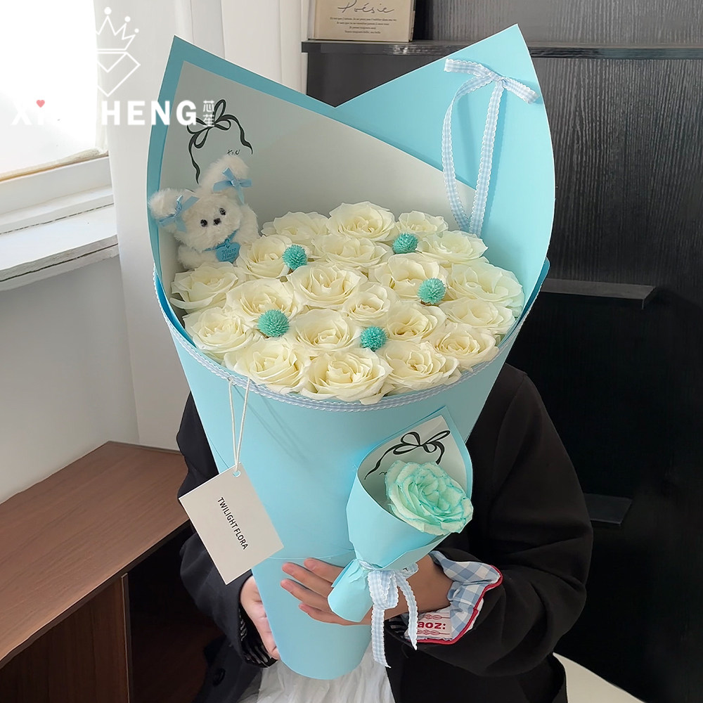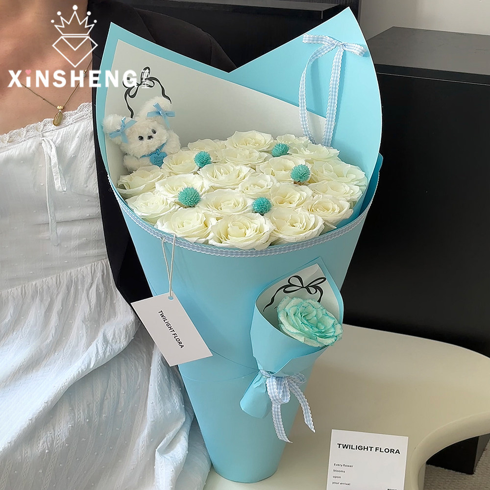纸花店花艺资材 纸鲜花束手工DIY浪漫蓝调高级包装 芯苼 蓝色系包装