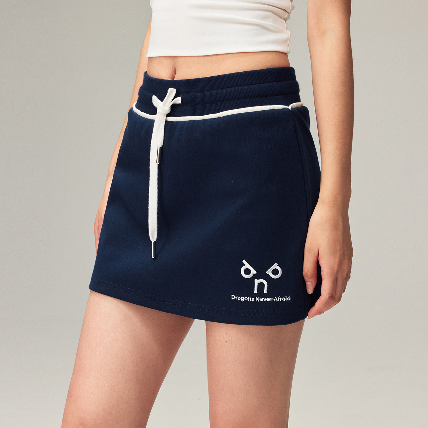 藏青撞色嵌条卫裙子2025年秋辣妹简约百搭休闲短裙 DNA官方