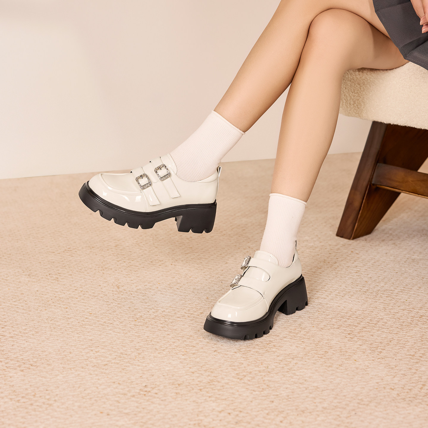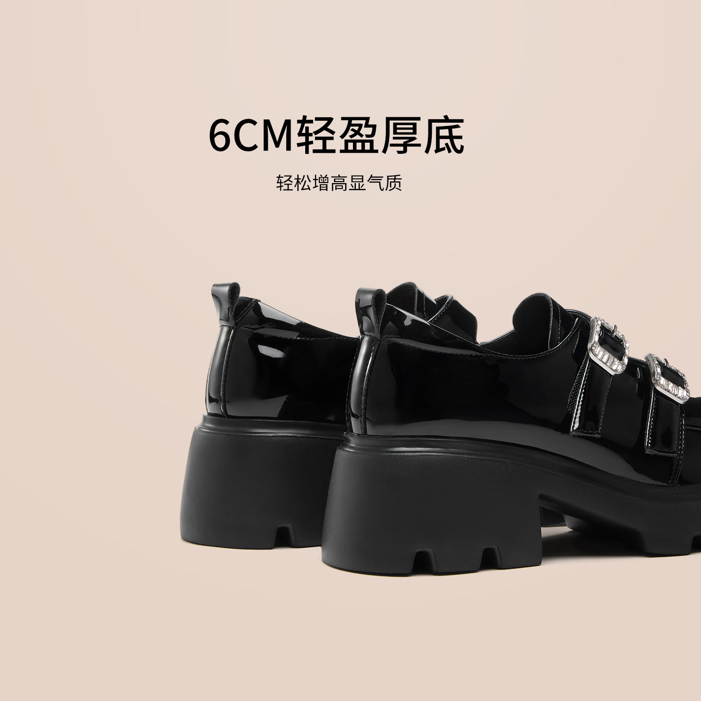 新款 乐福鞋 亮面漆皮小皮鞋 奥康 通勤单鞋 秋季 英伦风时尚 厚底 女鞋