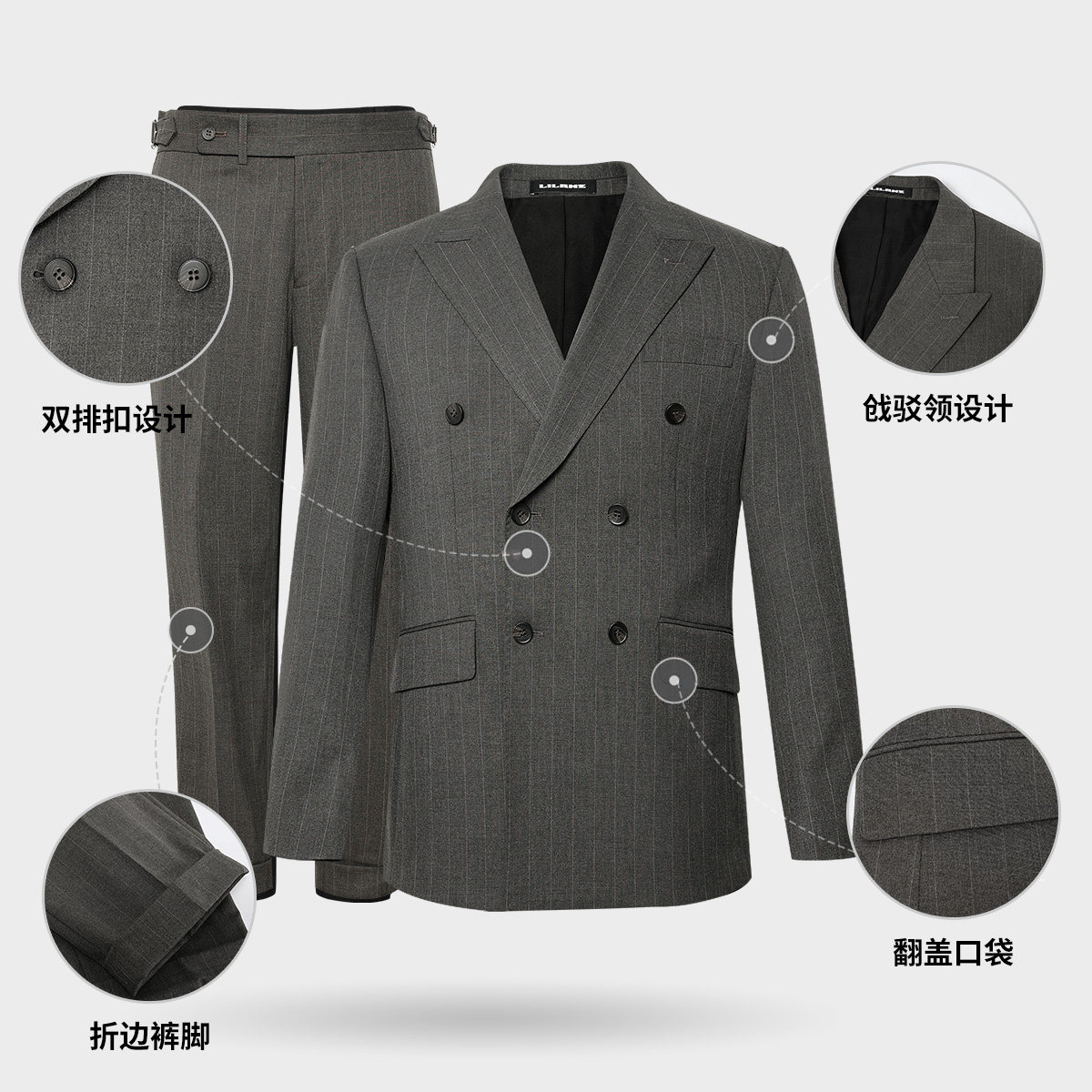 修身 男士 新郎结婚韩版 套装 型男高端双排扣西服 英伦风帅气商务西装